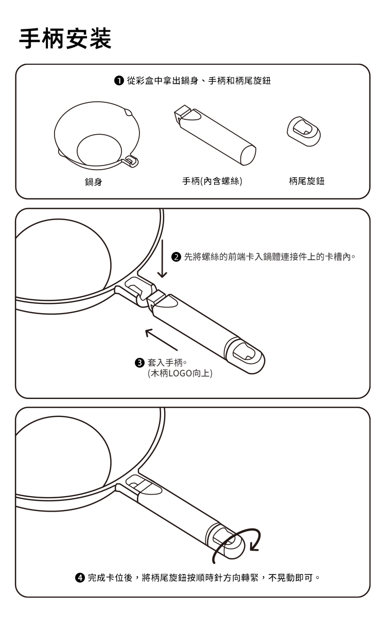 ※注意若發現手柄鬆動請及時栓緊,保護木柄不裂開。