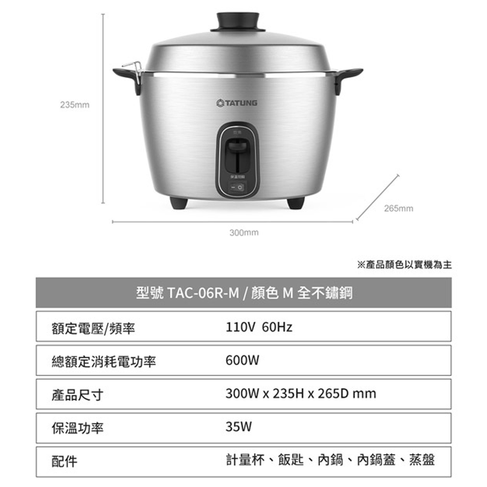 TATUNG Tatung 6-Person Stainless Steel Electric Cooker TAC-06R-MM