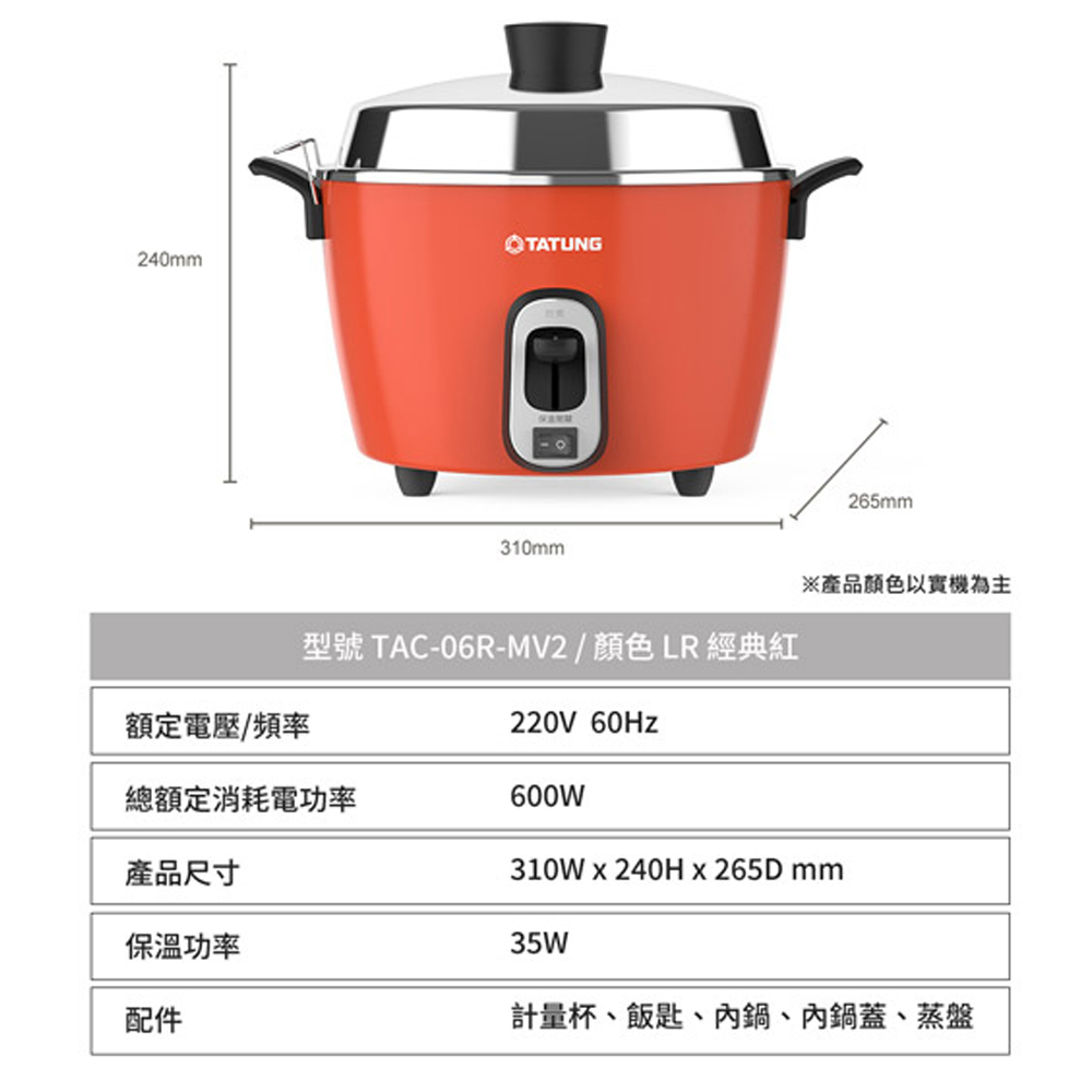 TATUNG Tatung 220V Multi-Voltage 6-Person Full Stainless Steel Accessories Electric Cooker TAC-06R-MV2LR