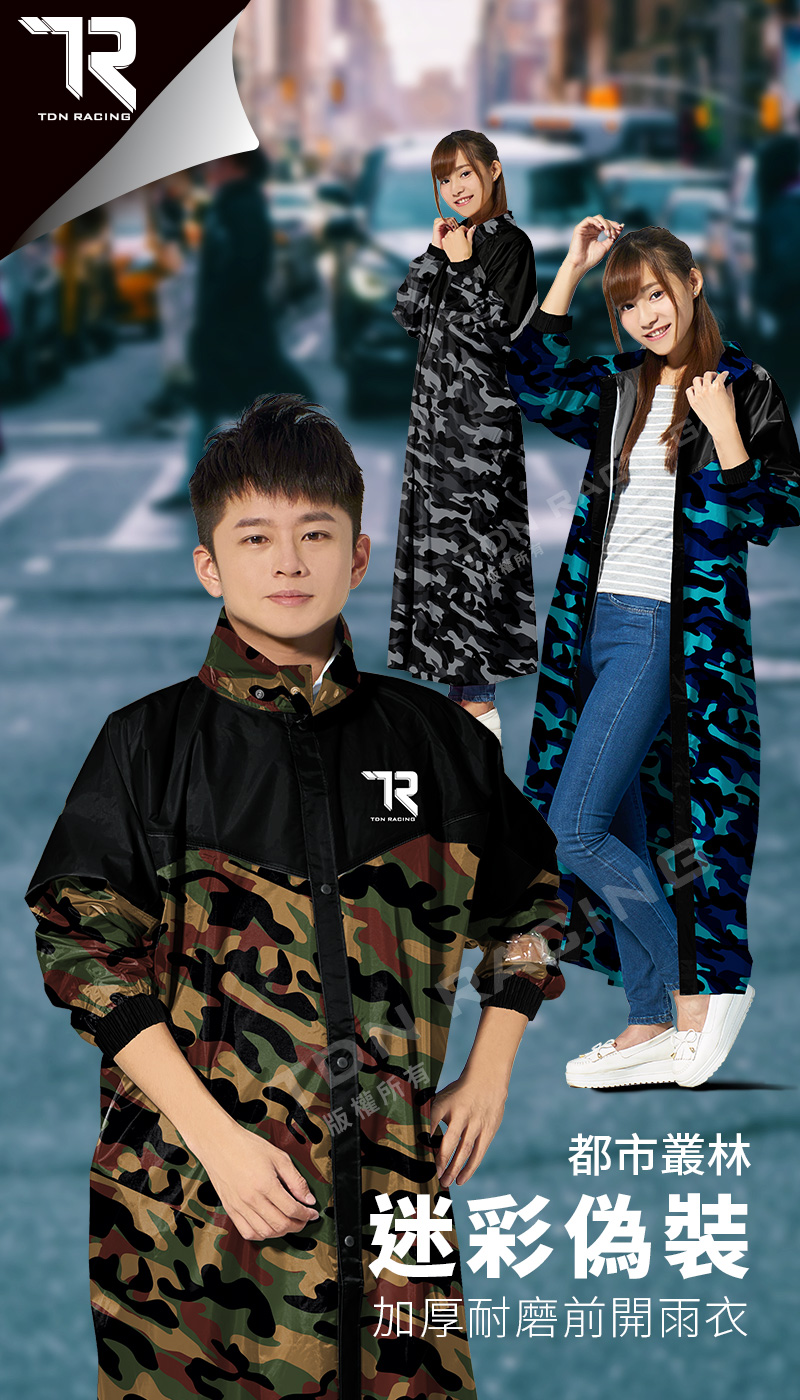 [Twin Dragon] Camouflage Front-Open One-Piece Raincoat (EK4289) Army Green-Long Size