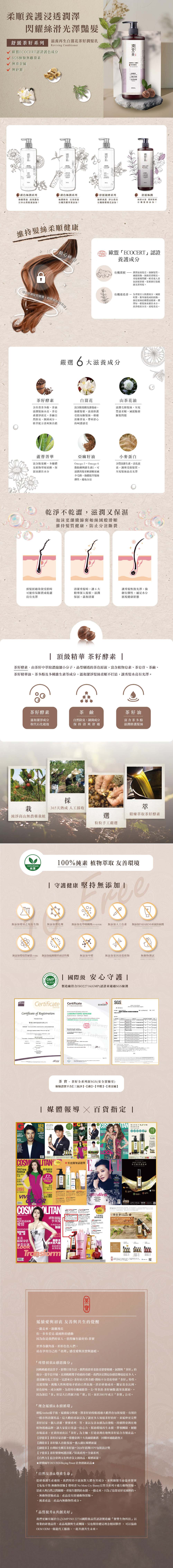 0矽靈 台灣『茶籽』及『有機薑根+有機迷迭香』優越養護力與『白薑花菁華』滋養修護效果完美融合,修護受損脆弱髮絲,多種草本配方預防斷裂分岔,回歸亮麗秀髮。