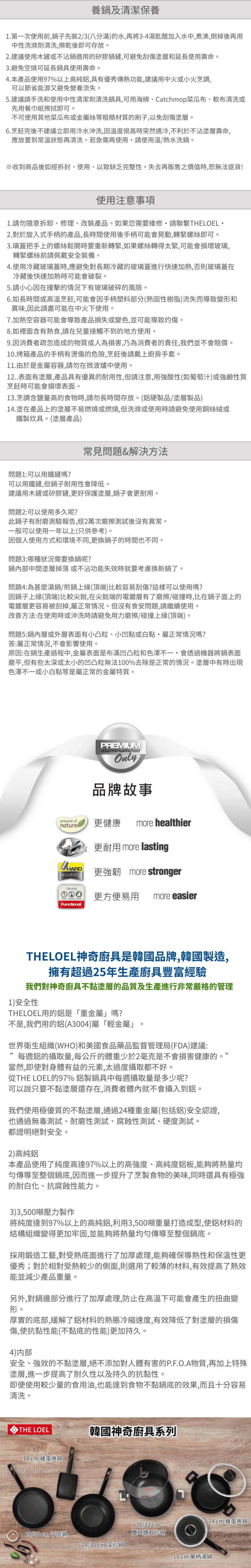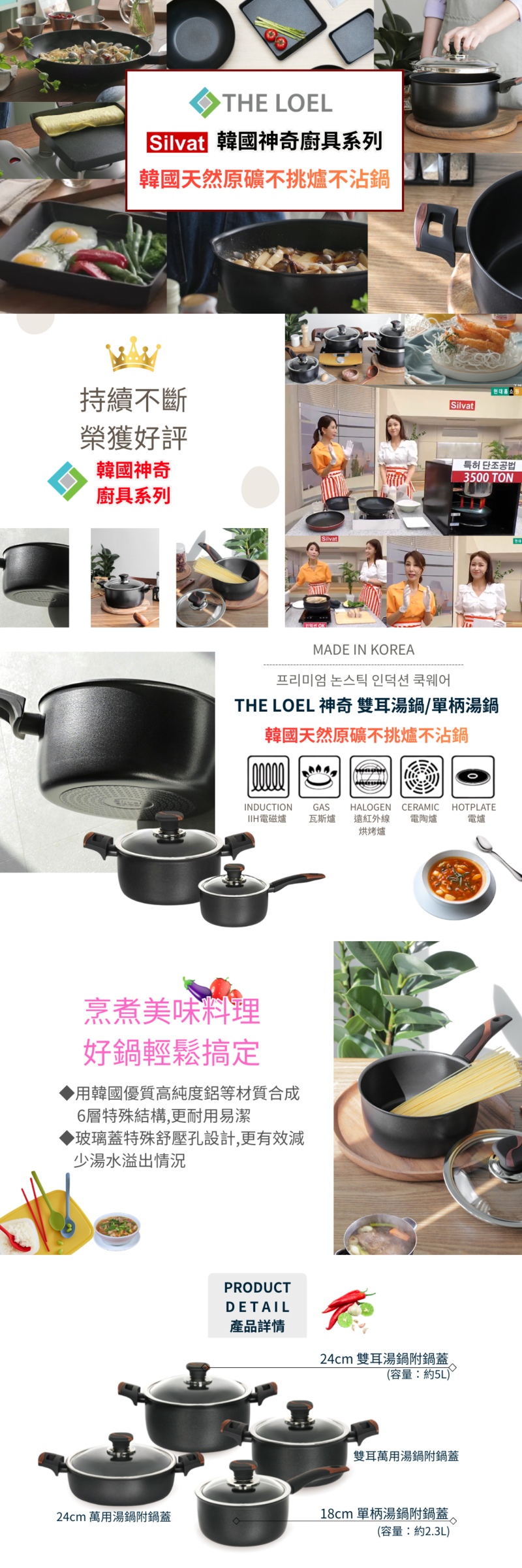 產品名稱:THE LOEL 韓國天然原礦不挑爐不沾鍋 18cm耐磨單柄湯鍋(附鍋蓋)