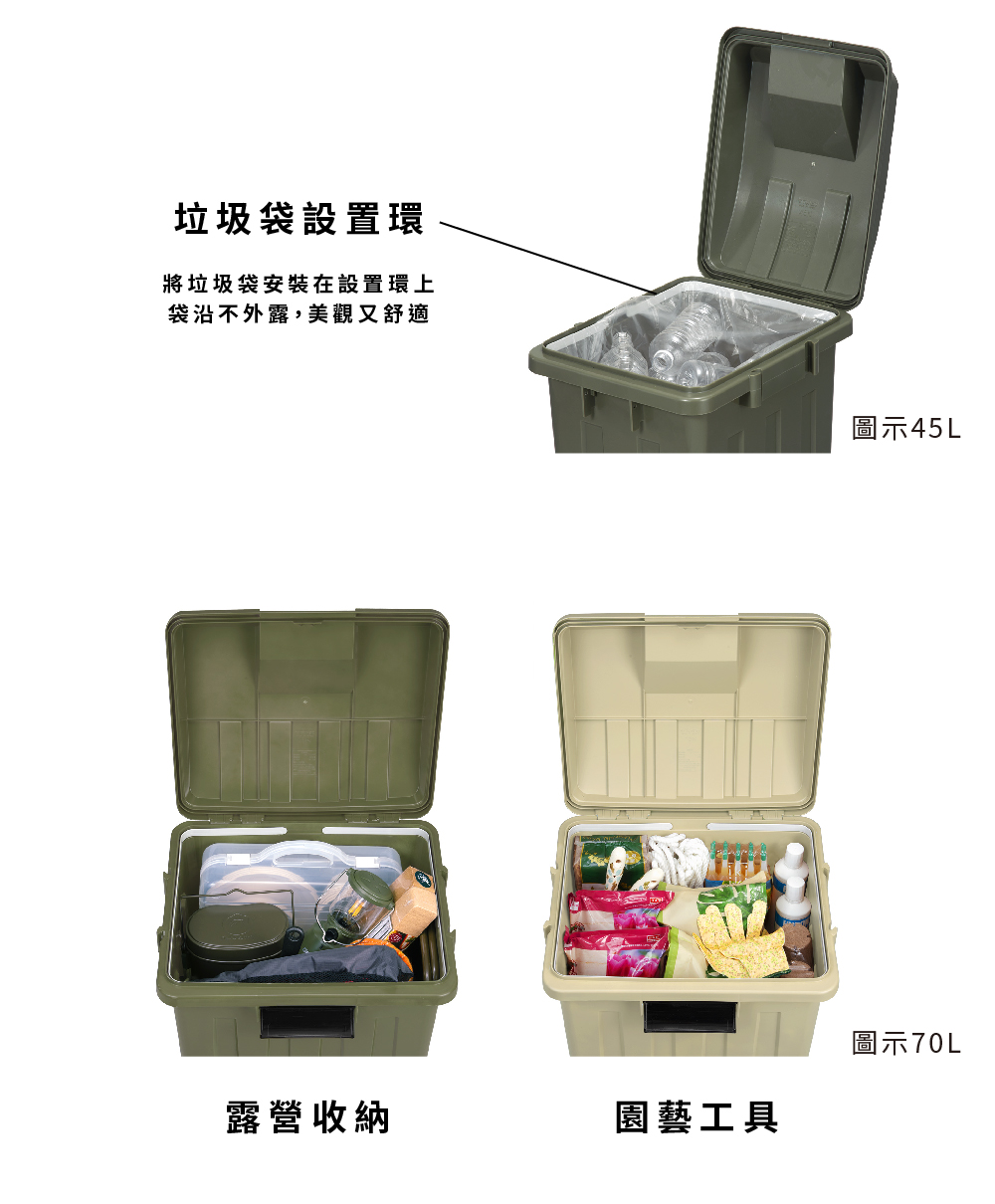 尺寸:寬49 x深41.5 x高62 cm材質:聚丙烯容量:76公升重量:2.05公斤產地:日本對應垃圾袋:適合70公升垃圾袋