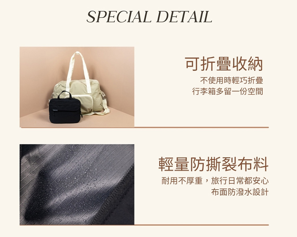 輕量防撕裂,防潑水設計:採用高品質聚酯纖維布料,耐用且不厚重。表面具備防潑水功能,應對突如其來的雨天或戶外環境也倍感安心。