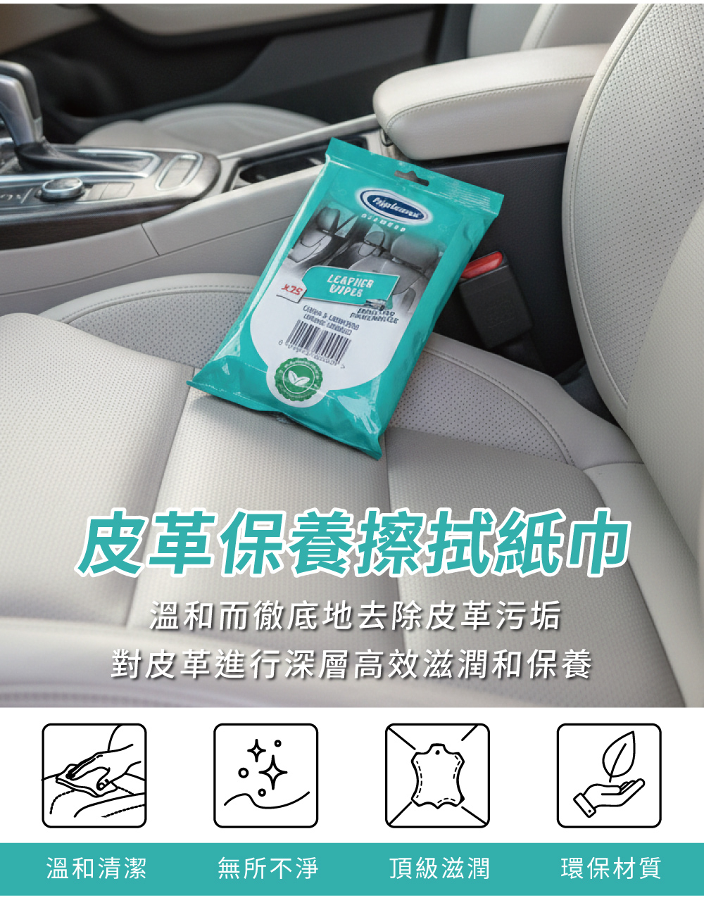 商品介紹皮革保養擦拭紙巾是含有特殊肥皂成份,可以溫和而徹底地去除皮革污垢。其天然油脂會滲透到皮革中滋潤和保護,讓皮革摸起來變的非常柔軟,並且不會讓您感覺油膩,看起來就是乾乾淨淨清清爽爽。