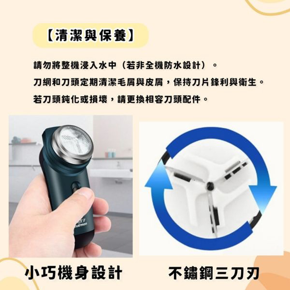 用後請關閉電源,並定期清潔刀頭(部分可拆洗,請依說明指示)。