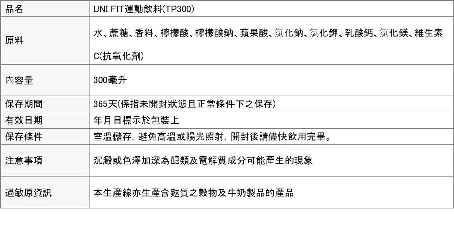 ◎Brand:UNI FIT ◎Specifications: 300ml毫升 x 1 x 24BOTTLE瓶
