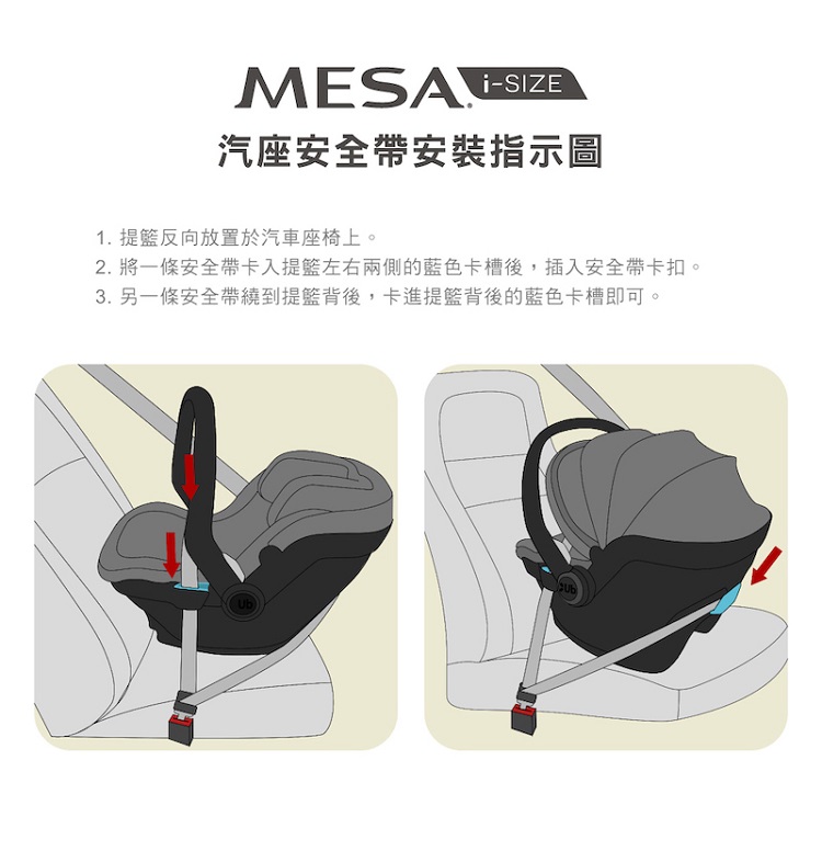 *MESA i-SIZE 採用了有史以來第一個側面碰撞測試標準。*頭枕利用 EPP 泡沫的吸收和恢復特性提供先進的側面碰撞保護。*直觀設計,易於安裝。*內含新生兒座墊,提供完美貼合及全方位保護。*超高覆蓋遮陽蓬,提供UPF 25+防護。*獨家專利解除鈕,提籃把手頂端解除鈕,單手即可分離提籃與推車,輕鬆提起手持。*可直接雙向安裝於VISTA、CRUZ (不用透過轉接器)。*MINU 可透過轉接器安裝。*本賣場連結為新生兒提籃(不含推車,圖片僅供示意)