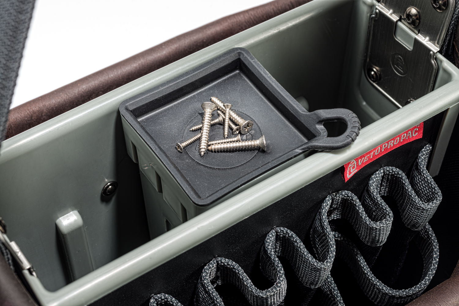 Tech OT-MC 工具手提袋是一款開放式工具儲存優化器。這款小型開頂工具包包含一個內部塑膠盒,其中包括一個帶有非磁性蓋的可重新定位插入盒,可根據您的工具存放需求進行客製化。TECH OT-MC 還具有多個垂直工具袋,可快速輕鬆地使用。