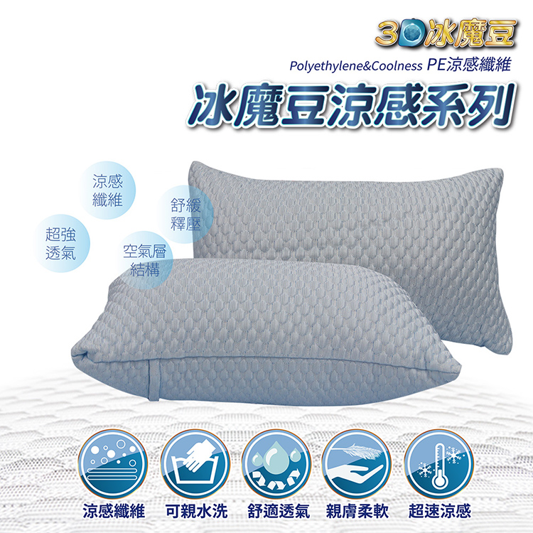 ★新一代降溫材質,結合高分子PE涼感纖維,清涼舒適★採用特殊織法,多層透氣結構設計,吸濕透氣不悶熱★3D立體微微凸起,點觸按摩,釋壓放鬆★面料柔軟如雲,久睡裸肌無壓痕★可水洗機洗,不易縮水,不易起毛球★搭配空調舒適加倍,四季皆可使用