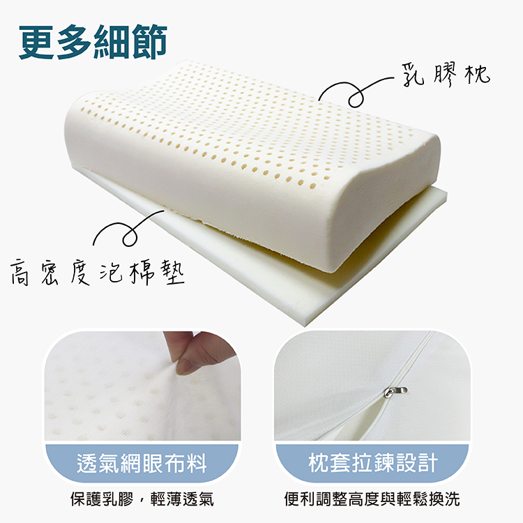 ﹝商品特色﹞★天然材質並有優於其他材料不易老化的優點。★防霉防菌,決不滋生病菌,同時表面清潔容易不易殘留汙穢雜質,故可以常保清潔★採用大面積透氣口設計,均勻排列,提供良好的透氣效果,不悶不熱★天然乳膠極佳之服貼性,使用壽命長,經濟實用★散熱快,易清洗、好保養★良好的支撐效果,讓您夜夜好眠