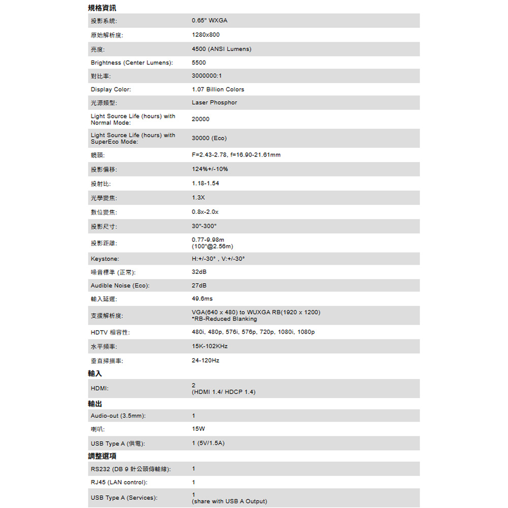 -第三代雷射光源技術,壽命可達 30,000 小時