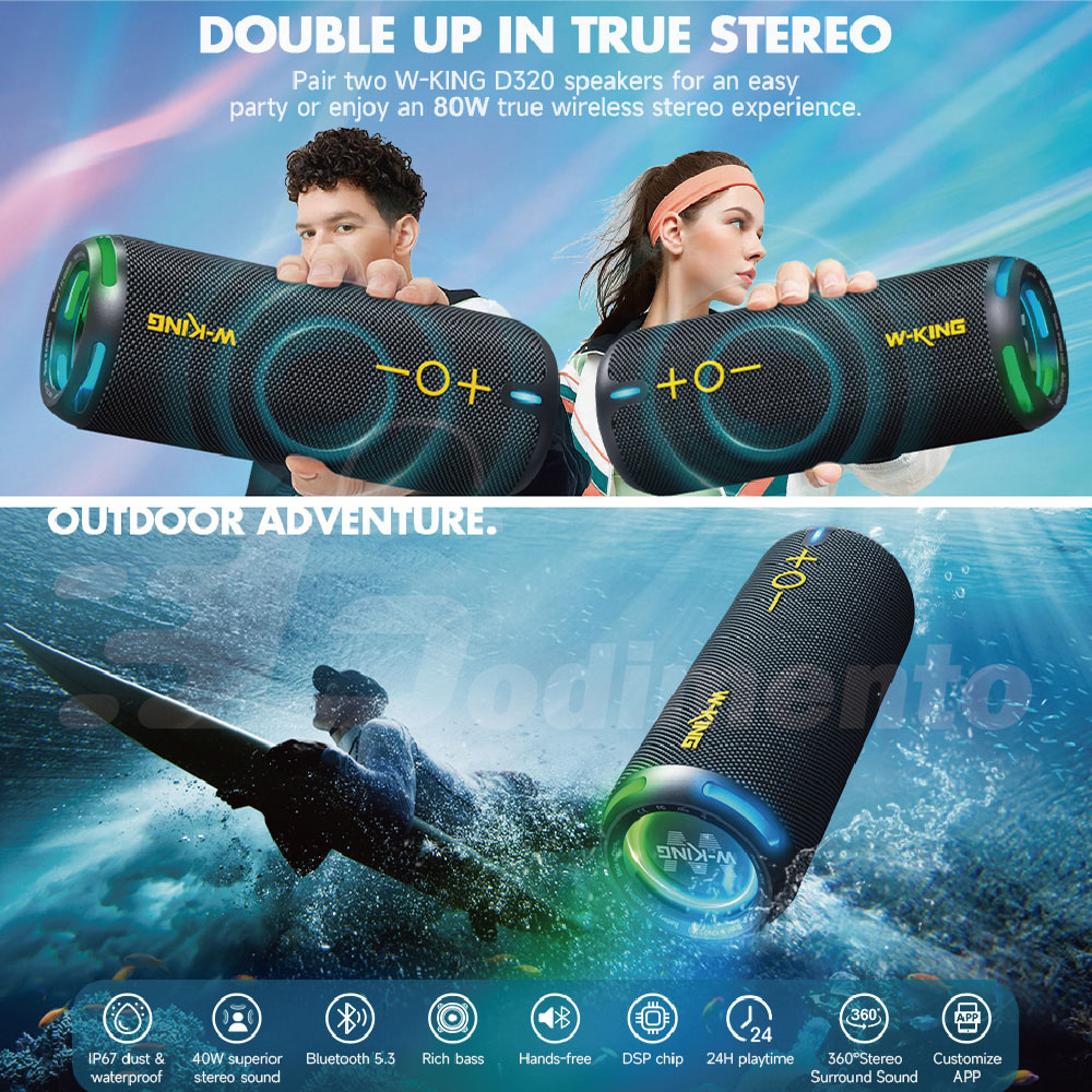 .雙音圈 & 360°環繞聲採用 雙音圈技術,提供 360°全方位音效,讓您無論在哪個位置都能享受均衡且震撼的音響效果。.自訂EQ & 調整聲音參數內建 自訂EQ功能,您可以根據需求調整低音、中音和高音,獲得個性化的音效設定,無論是重低音還是清晰高音,都能滿足您的音樂品味。.雙串聯80W音效 & 藍牙5.3支援 藍牙5.3,提供穩定的連接,並能夠 雙串聯成80W 音效,為您帶來更加震撼的音樂體驗。.IP67 防塵防水設計擁有 IP67防塵防水等級,不怕灰塵與水濺,專為全天候戶外使用而設計,隨時隨地輕鬆攜帶。.幻彩RGB呼吸燈效精美的 RGB呼吸燈效,隨著音樂節拍變換顏色,讓您的派對或活動氛圍更加絢麗,瞬間進入派對模式。.一鍵免持通話配備 免持通話功能,讓您輕鬆接聽來電,並享受 高清通話體驗,讓雙手也能輕鬆處理其他事情。