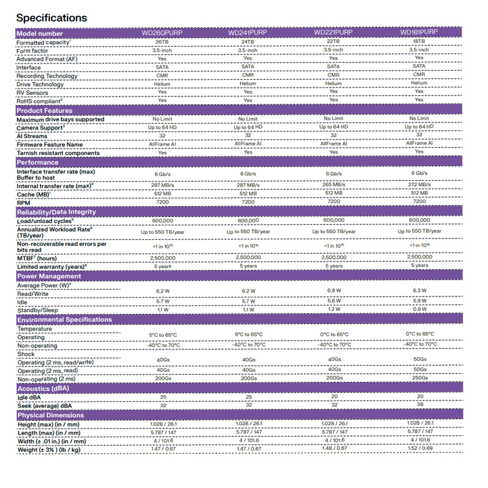 -適用於進階智慧型影片解決方案的儲存裝置-增強您的智慧型影片解決方案。-Western Digital 的獨家 AllFrameTM AI 技術-多部攝影機,多重串流-為進階系統提供進階工作負載能力-專為進階高效能智慧型影片解決方案中的可靠作業而設計-經過實地應用的高容量-藉由 WDDA 進行主動預防性儲存管理