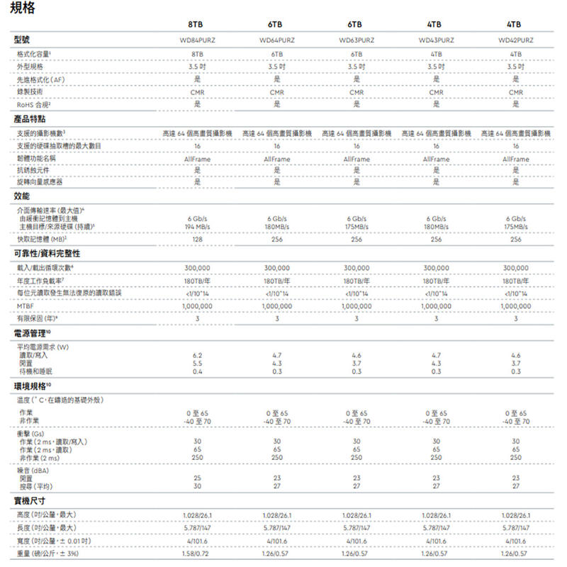 昌運監視器 WD63PURZ (新型號 WD64PURZ) WD紫標 6TB 3.5吋監控專用(系統)硬碟