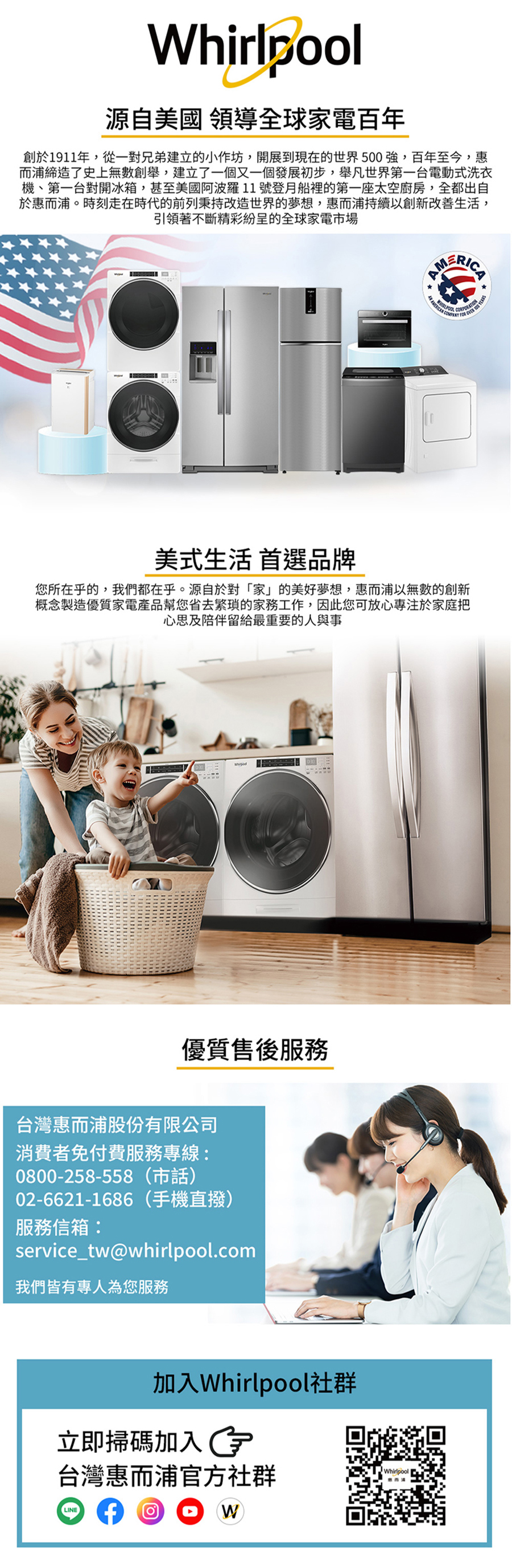 ◎Brand:Whirlpool惠而浦 ◎Specifications: 1PC台 x 1 x 1PC台