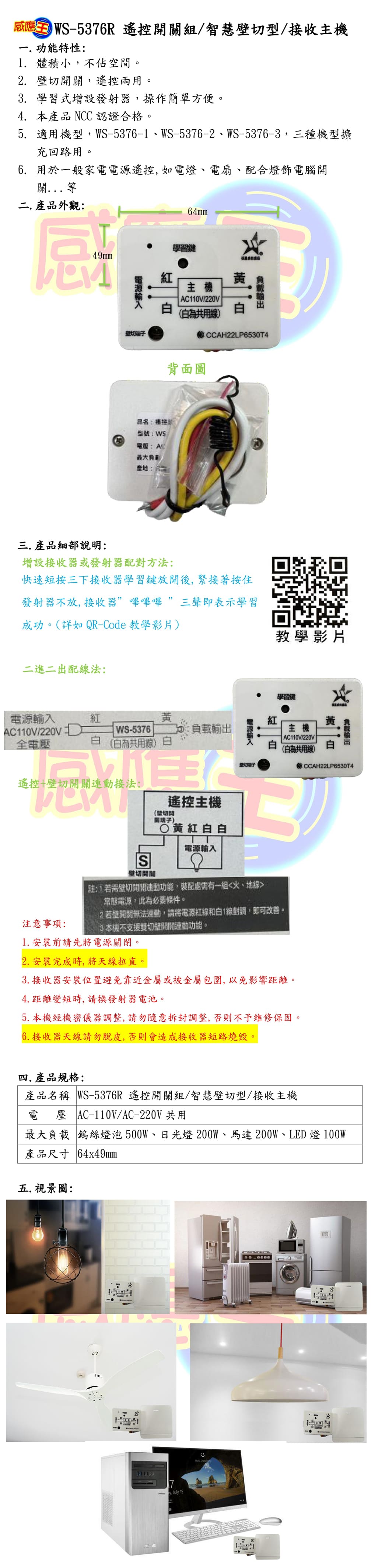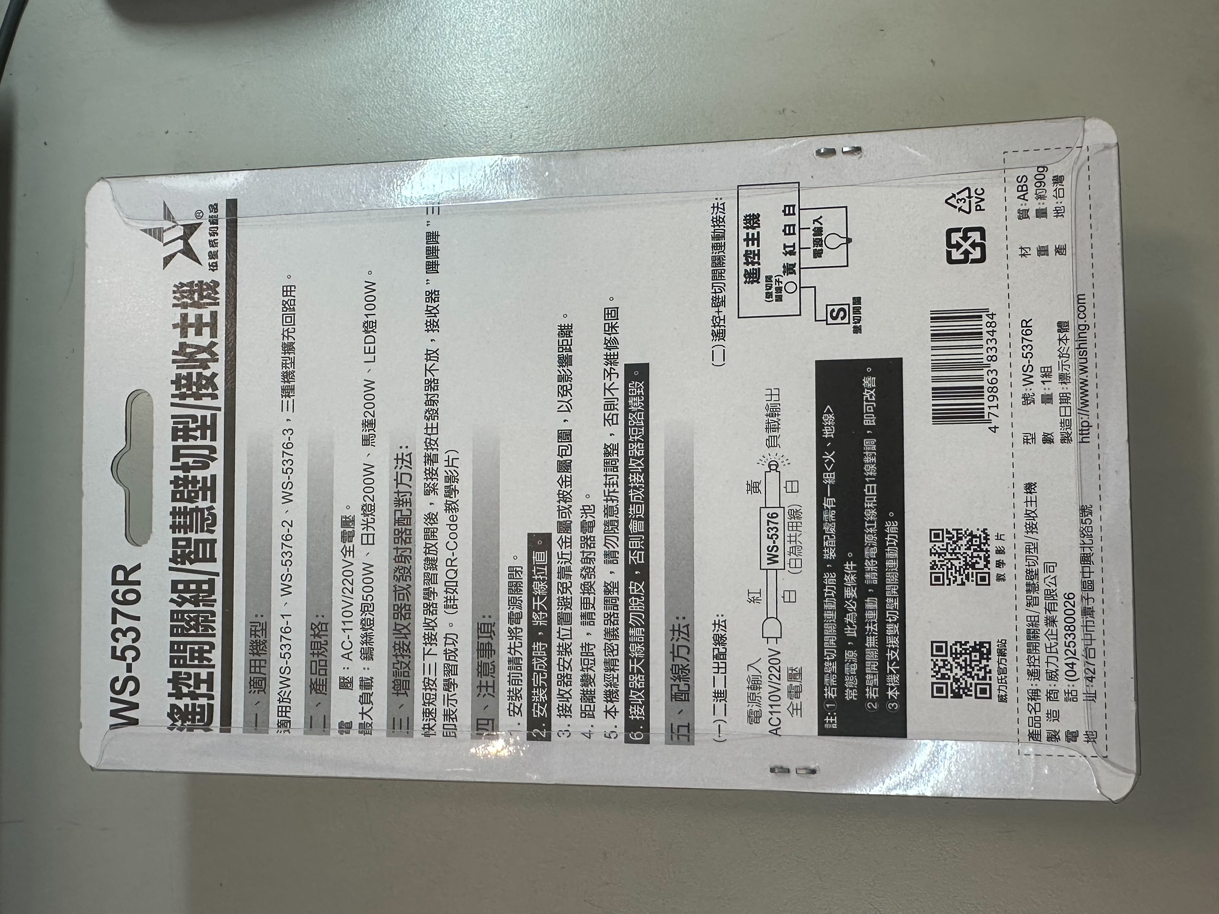 【WUSHING伍星】WS-5376R Remote Control Switch / Smart Wall-Mounted Switch / Receiver