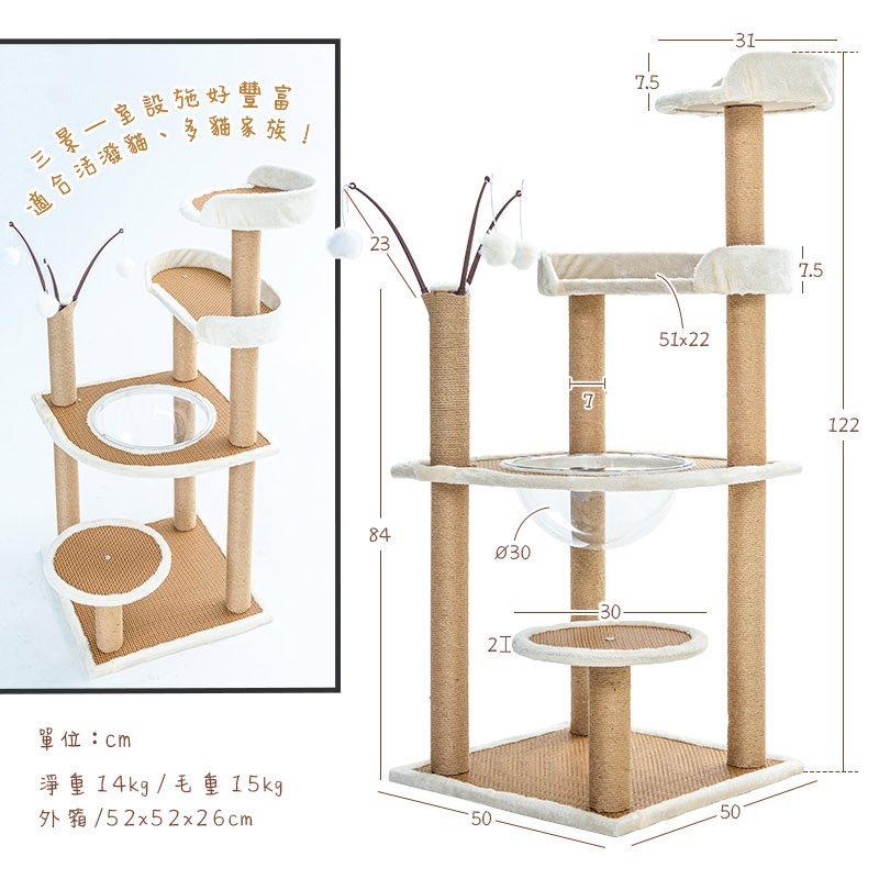 【Y HOUSE】Cat jumping platform/cat climbing frame/hemp rope column/large cat nest/cat villa/space capsule-three views and one room