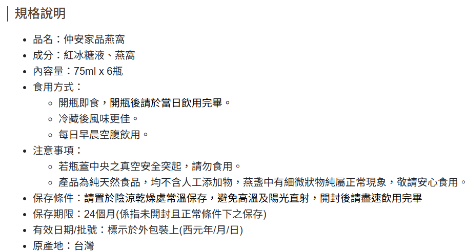 【仲安家】品燕窩(6瓶/盒)附提袋