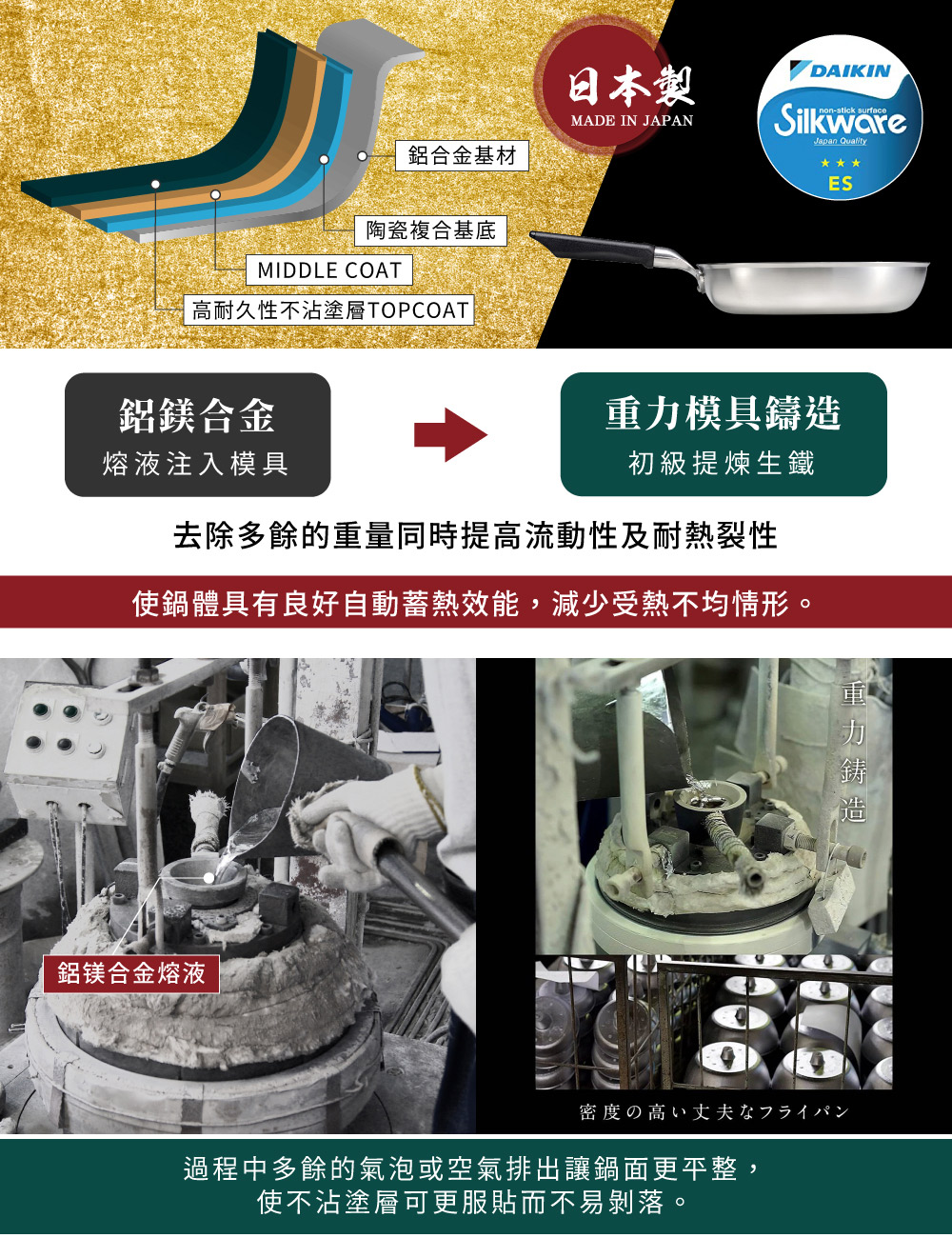 【技逸品】日本製不沾鍋平底鍋26cm(大金ES加工/鍋底部厚度2.7mm)