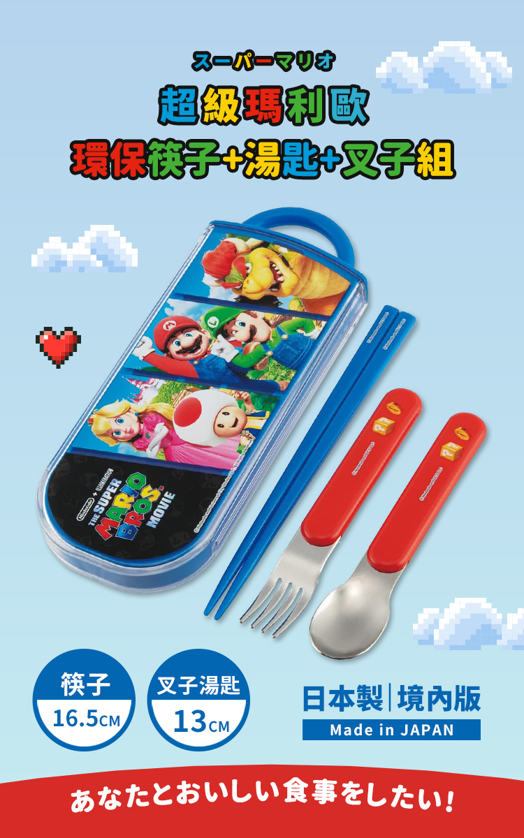 【百科良品】日本製 超級瑪利歐 環保筷子+湯匙+叉子三件餐具組(日本境內版)
