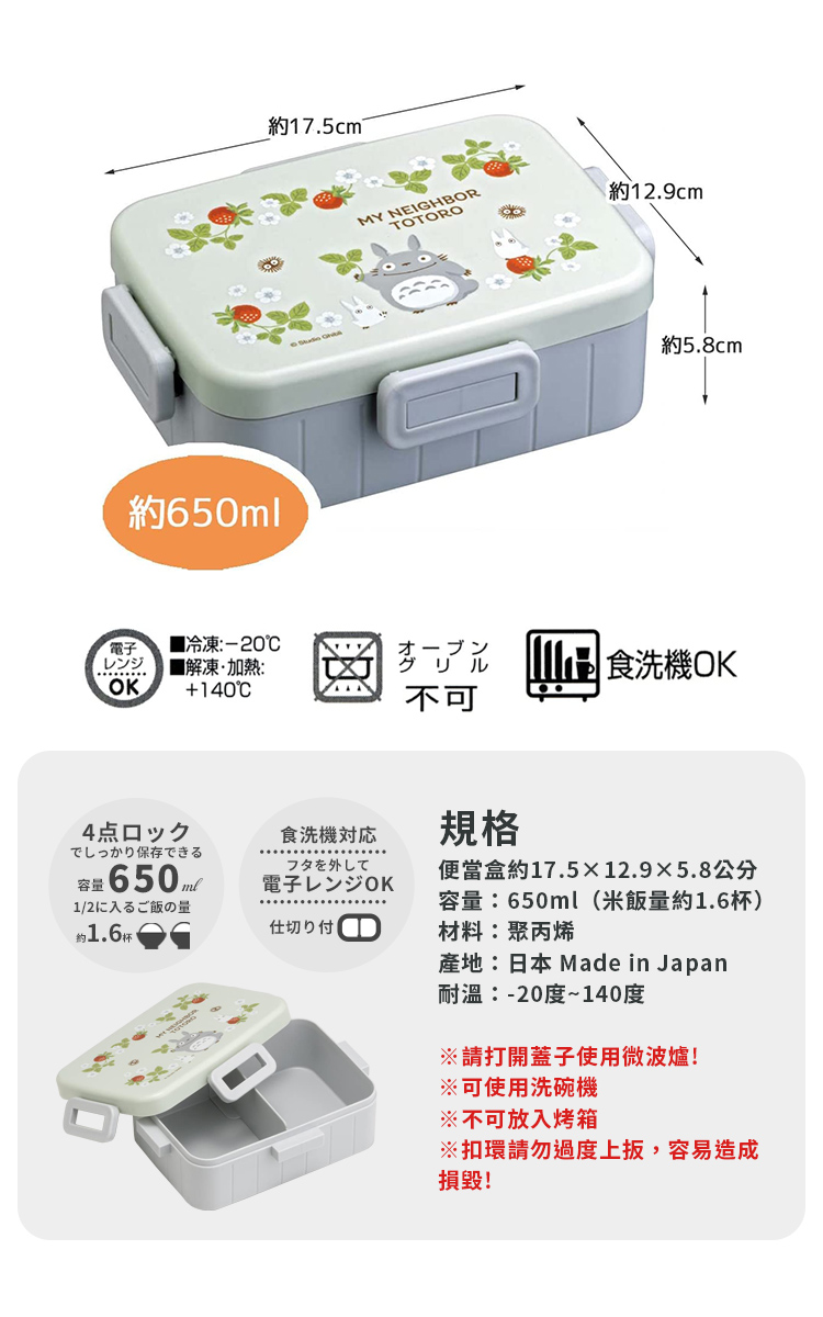 【百科良品】日本製 宮崎駿吉卜力 龍貓 便當盒 保鮮餐盒 抗菌加工Ag+ 650ML(日本境內版)-任選款