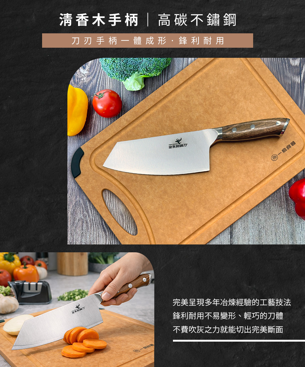 【金永利鋼刀】NN1-2清香木/高碳不鏽鋼 切刀+一鳥砧板 料理組