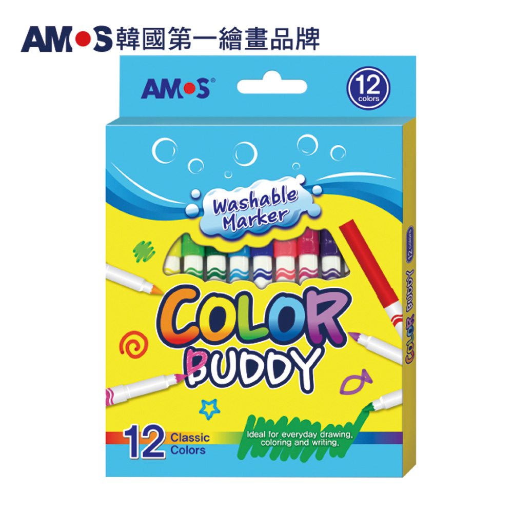 【韓國AMOS】12色可水洗雙頭彩色筆