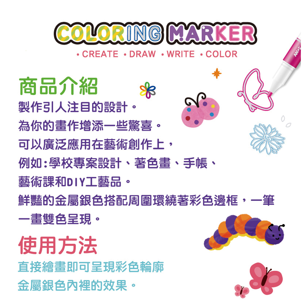【韓國AMOS】6色驚奇輪廓彩色筆