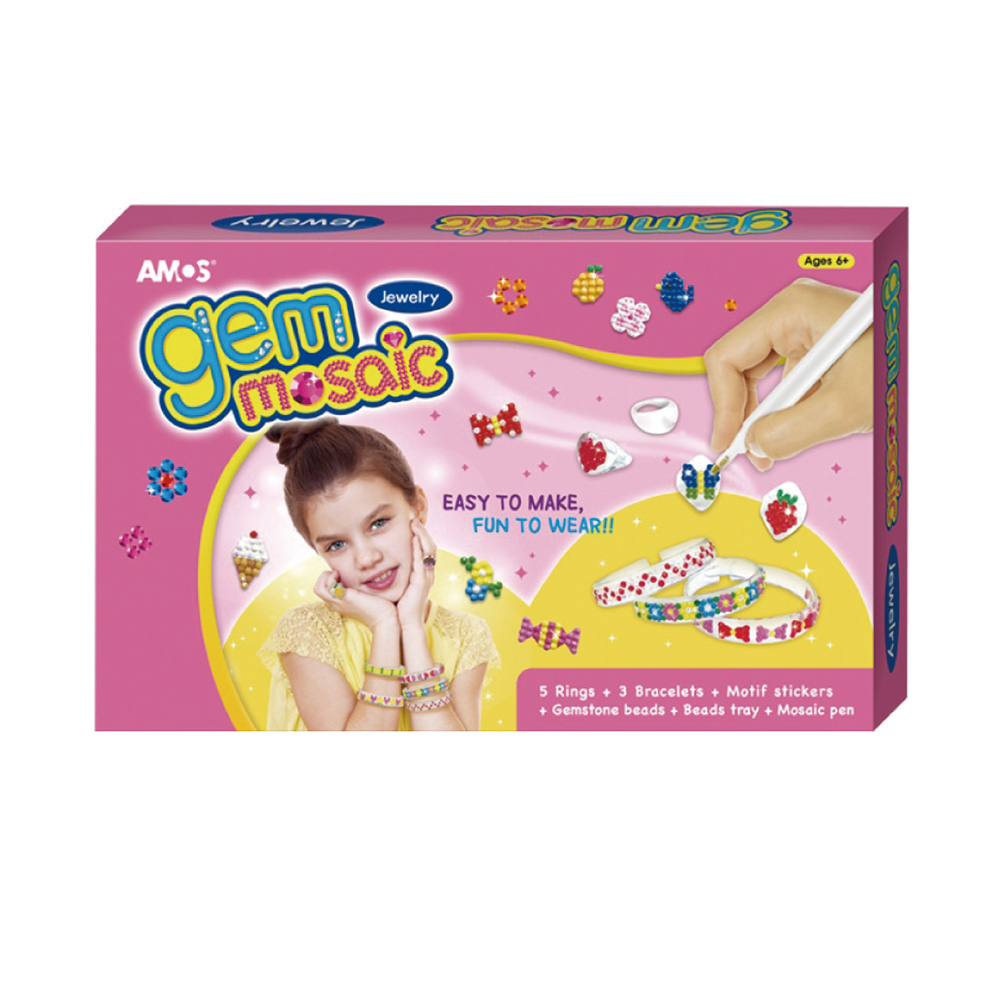 【韓國AMOS】DIY 創意貼鑽 戒指手環組[內容物]1.主題貼紙3張 2.寶石珠子 3.珠子托盤4.凝膠 5.拼鑽筆 6.壓克力戒指、手環EAN: 8802946511655材質:黏膠/ 彩鑽適合3歲以上
