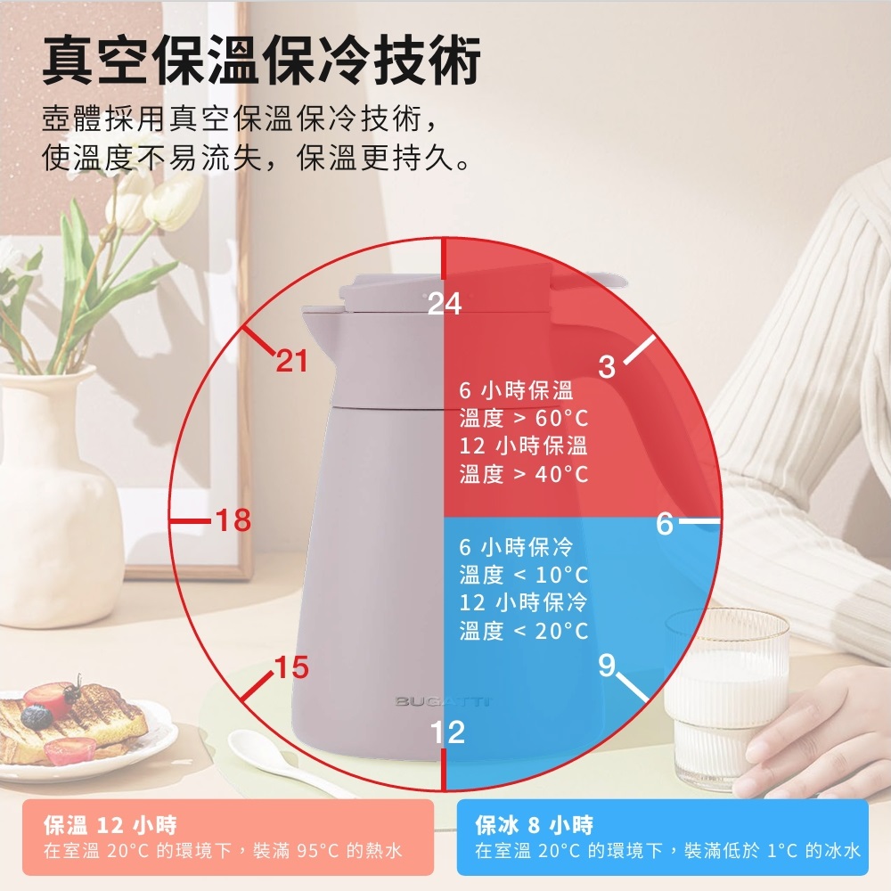 【Bianco di puro 彼安特】BUGATTI 桌上型不銹鋼保溫壺 1000ml