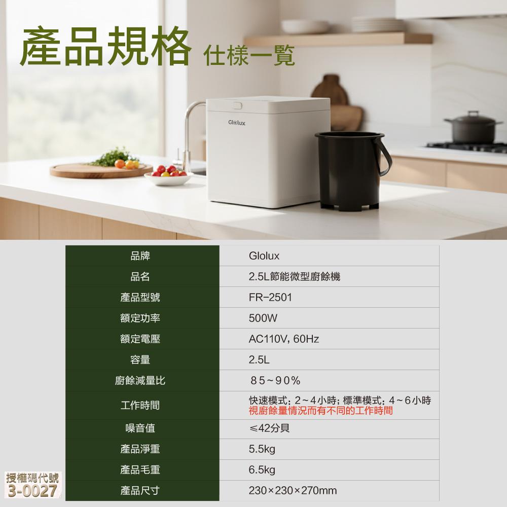 {最快農曆年前出貨}【Glolux】2.5L節能微型廚餘機-簡約白