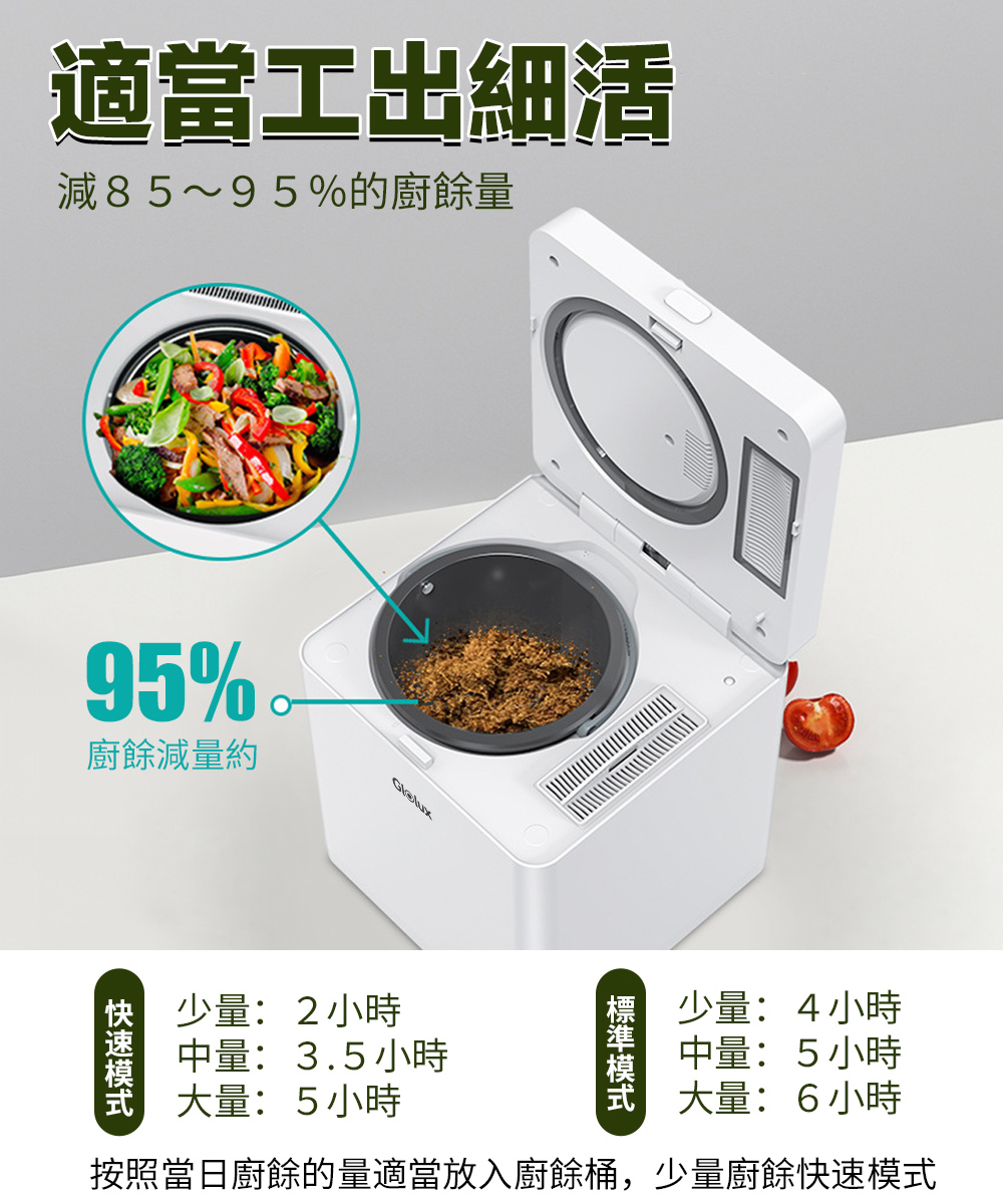【Glolux】2.5L節能微型廚餘機-簡約白