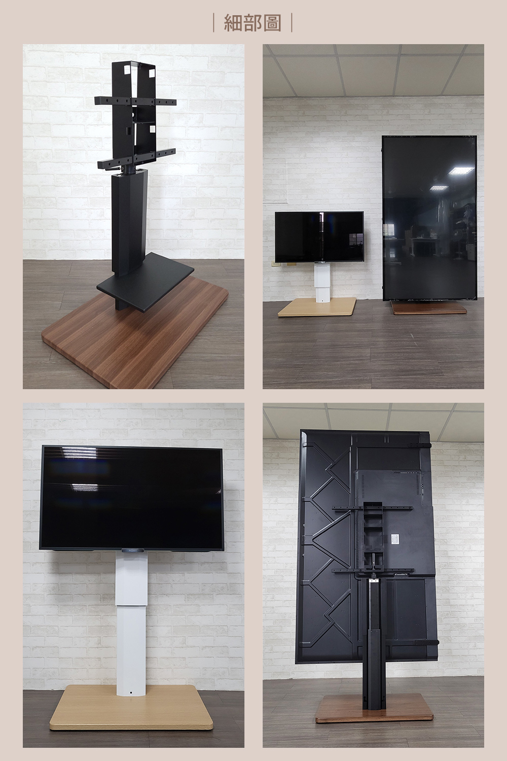 尺寸:長80x寬50x高116-150cm材質:塑鋼、金屬、底板底板材質:MDF高壓密集板(PVC貼膜)表面加工:杜邦抗汙塗層適配尺寸:60-75吋產品承重:120KG產地:台灣保固:1年