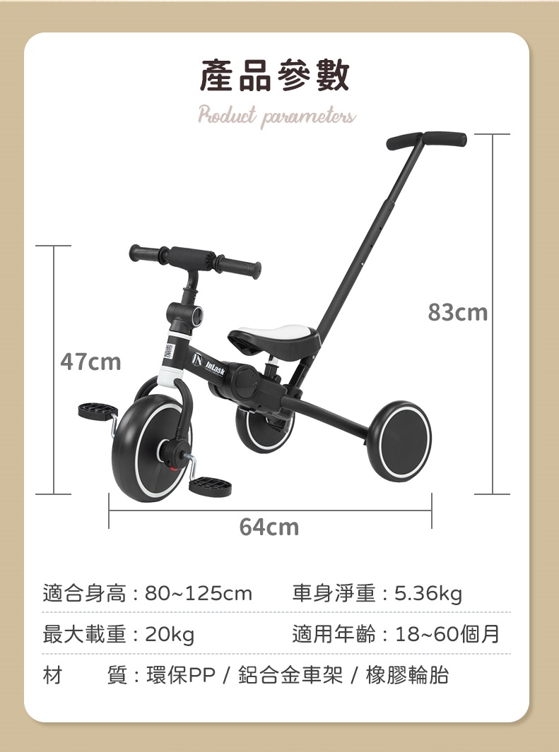 品名: 【InLask 英萊斯克】多功能兒童滑步車/兒童滑板車 商品尺寸:64x47x83cm