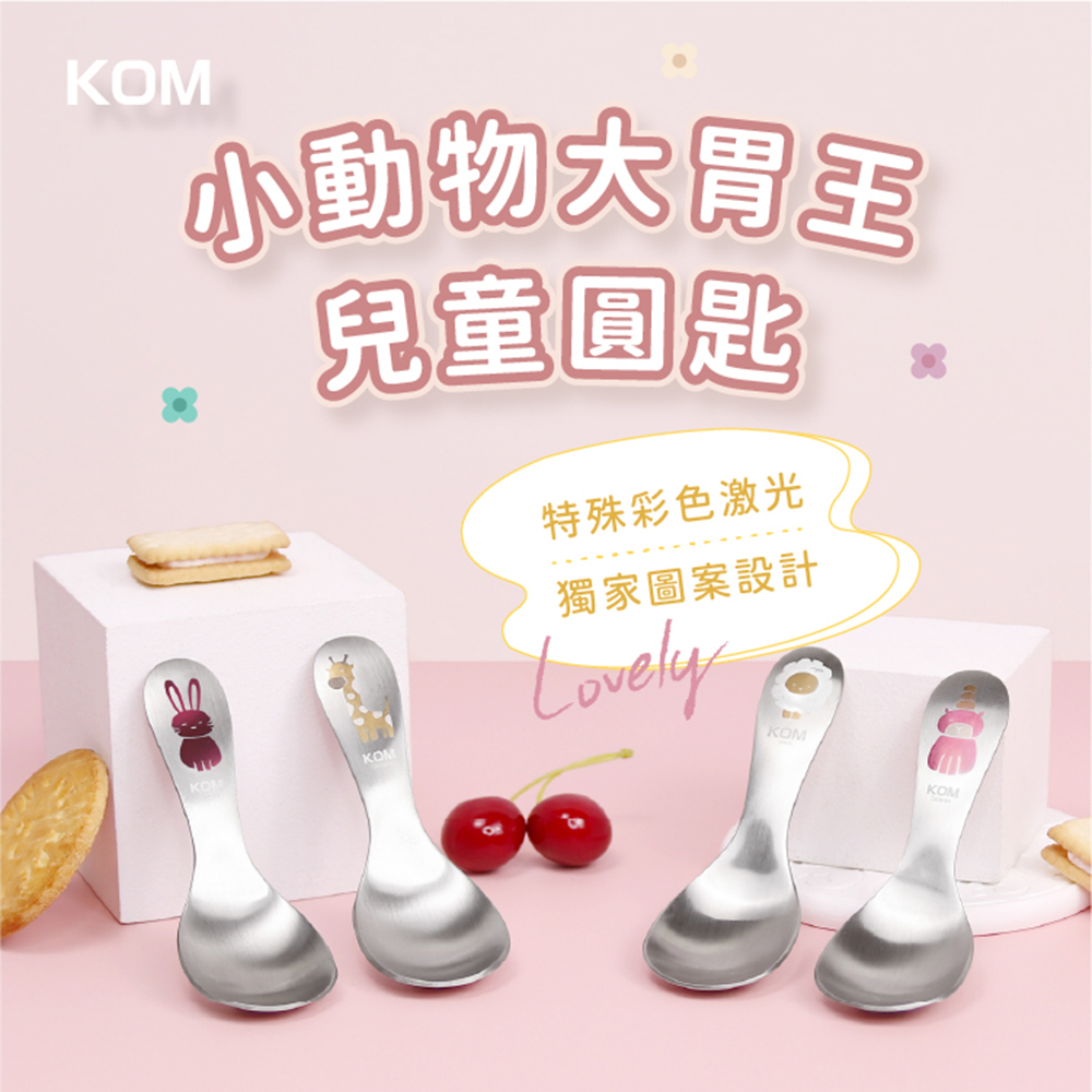 【KOM】小動物大胃王304不鏽鋼兒童圓匙3入(湯匙/多款任選)