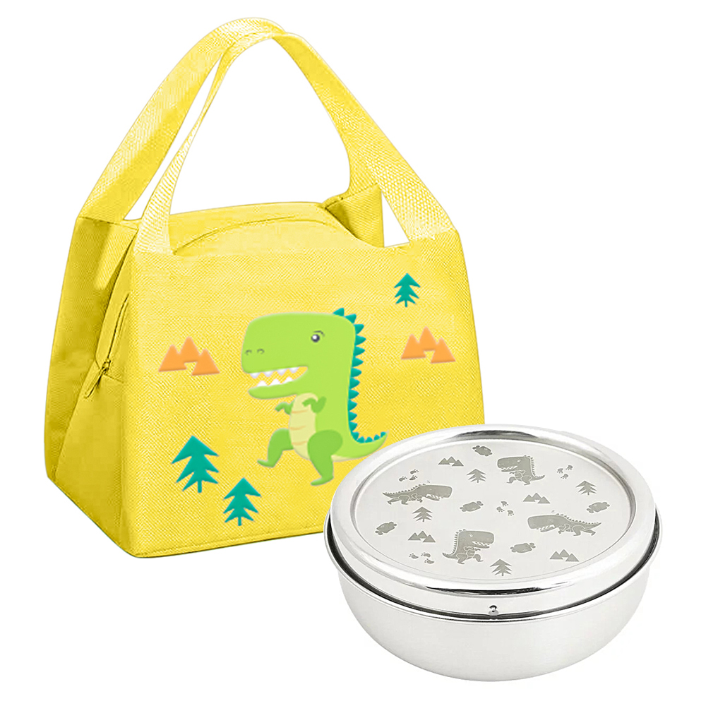 【KOM】台灣製316不鏽鋼兒童隔熱碗/附湯匙+防水牛津布保溫便當袋/餐袋 2入組(圖案任選)