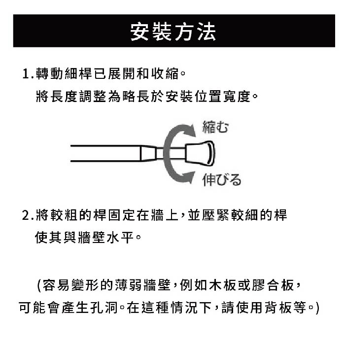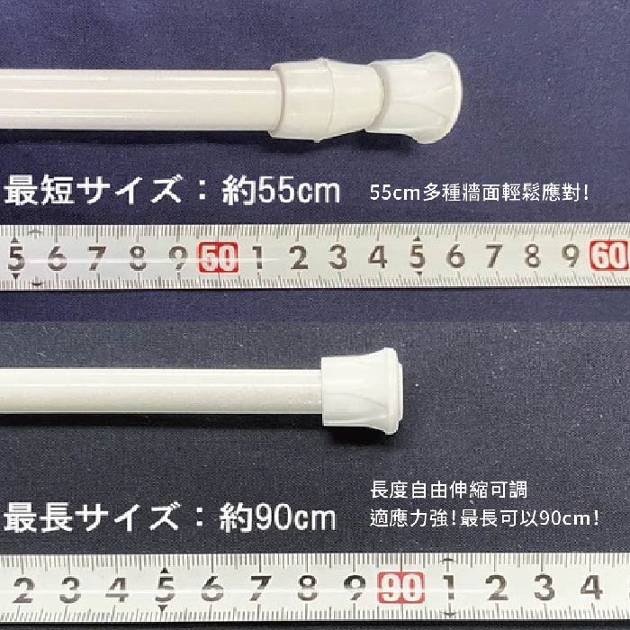 生產國: 中國材質/成分:鋼*PVC產品標籤: 附伸縮尺寸:55-90cm桿粗細:外桿/直徑約13mm,內桿/直徑約10mm負載:約1公斤