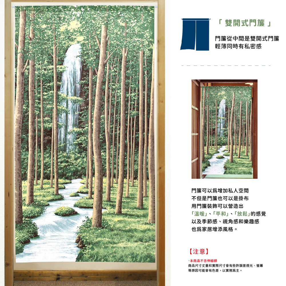 日本製【コスモ】長門簾《林間瀑布》自然にあふれた風景や外国の街並み、世界遺産などを取り揃えた『風景のれん』シリーズ。自然豊かなデザインは癒しの空間に。海外の庭園や風景、世界遺産のデザインは旅行気分に。縦にストライプ状のレース編模様がある、編みレース生地を使用。レース生地の中でもしっかりとした生地ですので反対側がシルエット調に見えるくらいの透け感があります。『暖簾の使い方はいろいろ』アパートの玄関を開けた時に室内が見えないように。ドアが無い空間の間仕切りに。収納棚の目隠しに。壁に掛けてポスターやタペストリーのように。「風景門簾」系列,以豐富的自然景觀山水、異國都市風景、世界遺產等為主題充滿自然氣息的設計,營造出輕鬆的空間。海外花園、風景、世界遺產的設計,讓你有一種在旅行的感覺。採用針織蕾絲布料製成,帶有垂直條紋蕾絲編織圖案,它是蕾絲面料中比較堅固的面料,它是如此透明,以至於另一面看起來像剪影。【門簾可以用於多種方式】當前門打開時隱藏公寓的內部你就看不到裡面的狀況用於無門分隔空間用於隱藏儲物架將其像海報或掛毯一樣掛在牆上生產國: 日本材質/成分:100%聚酯纖維包裝:獨立袋包裝國際條碼:4943741953913尺寸:約85 公分(寬)x 150 公分(長)出貨:門簾*1件清洗方式:可水洗、不可漂白、不可烘乾顏色:如圖,網頁產品因拍攝與各顯示器顯色不同關係,與實品略有差異, 此商品圖為參考用之情境圖示,產品內容以規格敘述內容為準適用:臥室門、廚房門、浴室門、衣櫥、玄關入口...等【注意事項】伸縮桿需自備,商品內容為門簾本體並無附桿子
