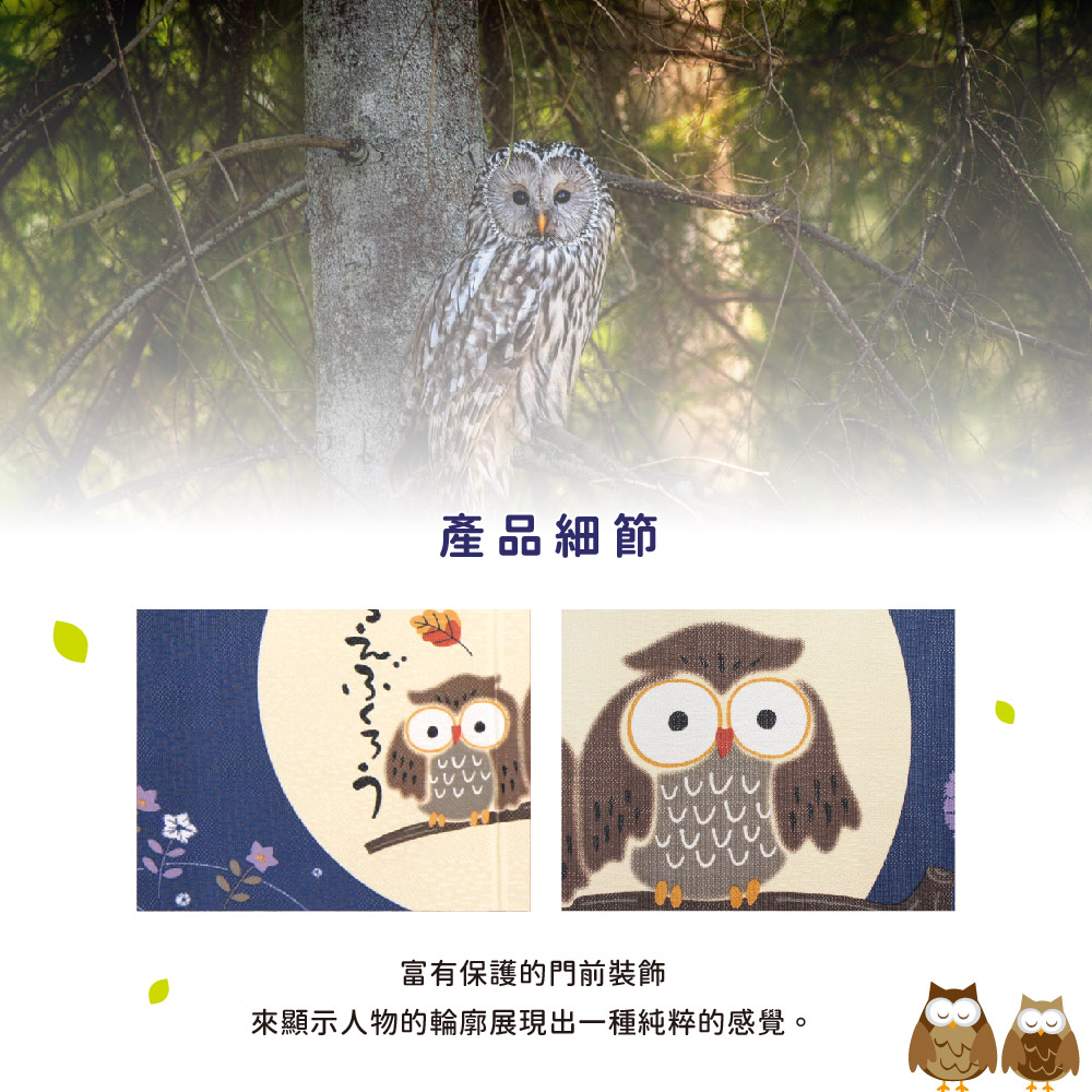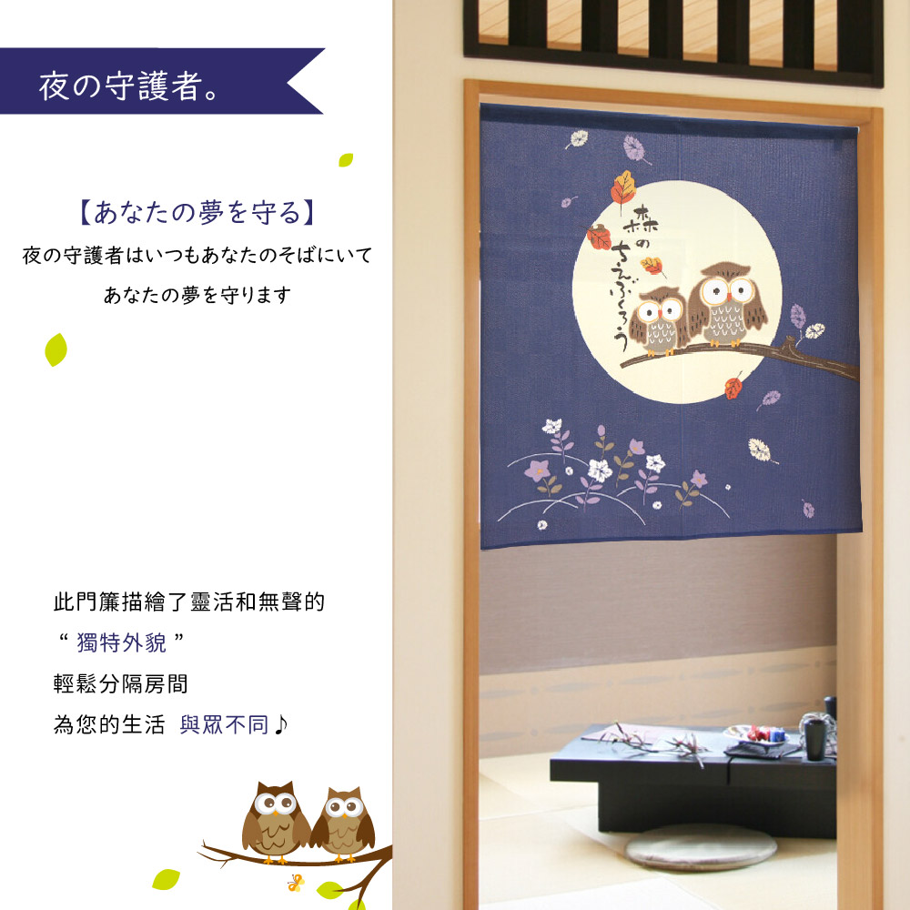 日本製【コスモ】中門簾《貓頭鷹》海軍藍フクロウは【不苦労】など語呂合わせから福を招くと言われており縁起の良いのれんです。使用場所に合わせて使える3サイズです。縁起物/開運/福招き/梟/紺/青/NV/ネイビー/藍據說貓頭鷹可以帶來好運,因為它們有”有忘掉苦勞去厄開運”等雙關語這是一個吉祥的善意,好運護身符。生產國: 日本材質/成分:100%聚酯纖維包裝:獨立袋包裝顏色:海軍藍尺寸:約85 公分(寬)x 90 公分(長)國際條碼:4943741000921出貨:門簾*1件清洗方式:可水洗、不可漂白、不可烘乾顏色:如圖,網頁產品因拍攝與各顯示器顯色不同關係,與實品略有差異, 此商品圖為參考用之情境圖示,產品內容以規格敘述內容為準適用:臥室門、廚房門、浴室門、衣櫥、玄關入口...等【注意事項】伸縮桿需自備,商品內容為門簾本體並無附桿子