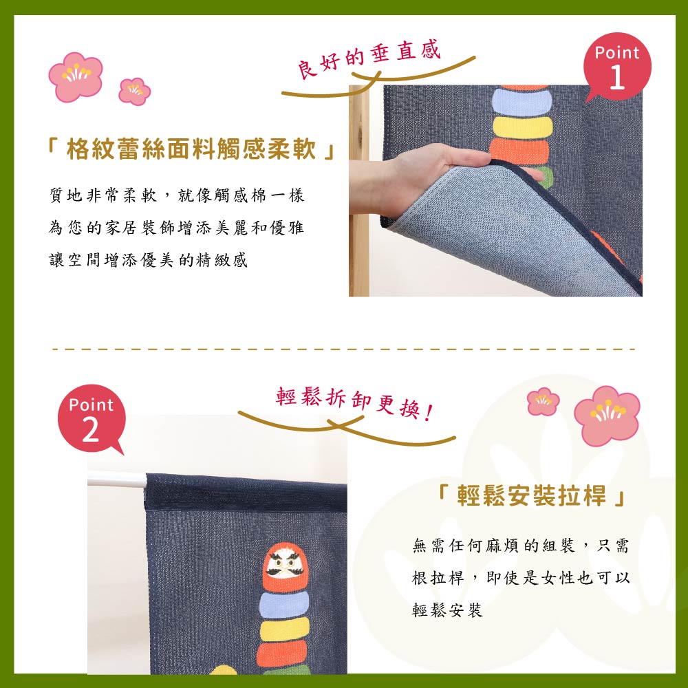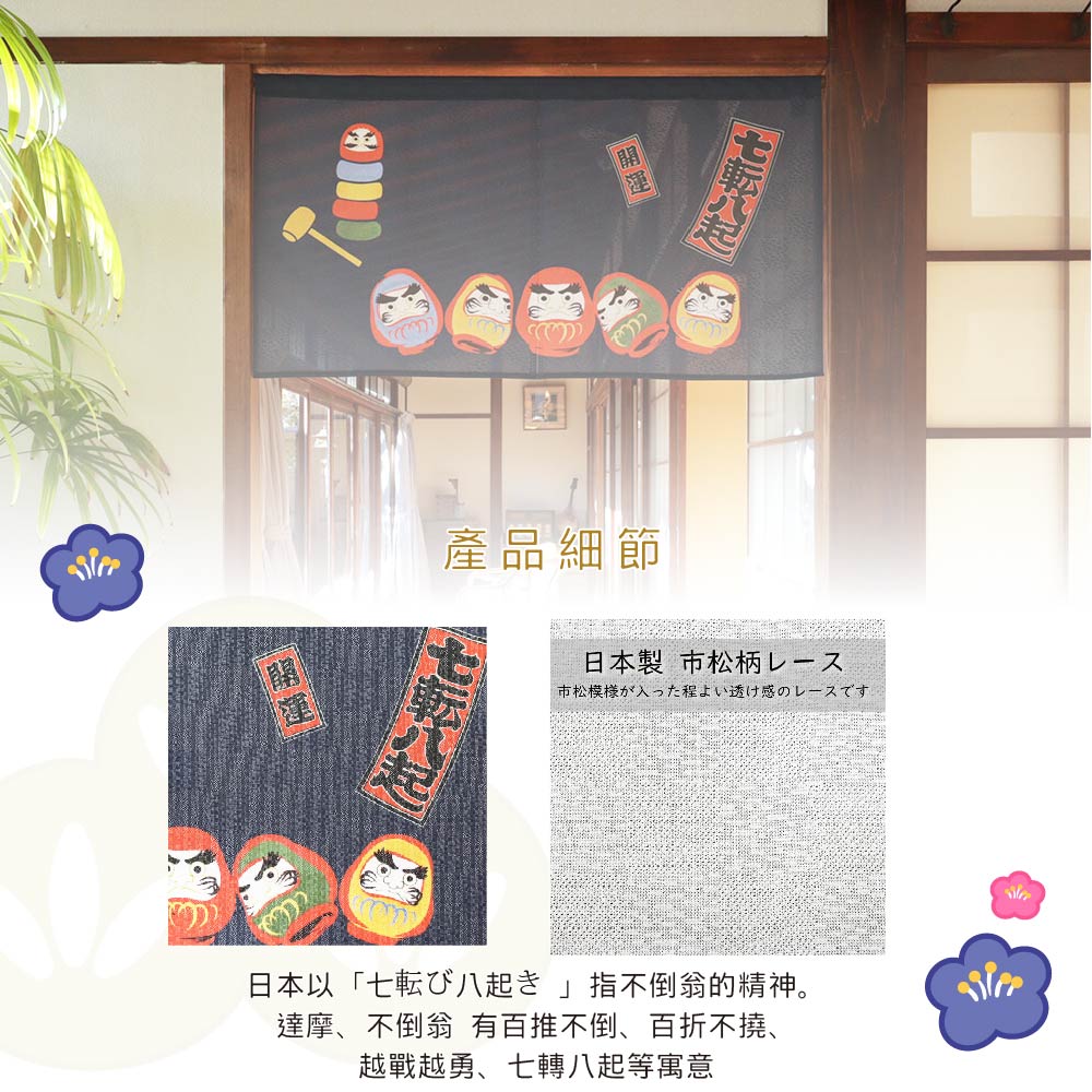 日本製【コスモ】短門簾《達摩七福神》 福の神として進行されている七福神や、「福来郎」「不苦労」などの語呂合わせから幸せを運ぶと言われているフクロウなど日本で古くから親しまれている縁起物をあしらったのれんシリーズです。場所を取らずに、縁起をかついだりお部屋の雰囲気を変えたりすることが出来ますので、インテリアに、お土産に、贈り物などにぜひご活用下さい。 七福神和貓頭鷹,據說能帶來幸福。還有據說能帶來幸福的貓頭鷹。這是在日本長期流行的帶有幸運符的門簾系列。它們可以用來帶來好運或改變房間的氣氛而不佔用太多空間,請使用它們作為室內裝飾、紀念品、禮物等。 生產國: 日本材質/成分:100%聚酯纖維包裝:獨立袋包裝尺寸:約85 公分(寬)x 45 公分(長)J13-35-45國際條碼:4943741276340 出貨:門簾*1件清洗方式:可水洗、不可漂白、不可烘乾顏色:如圖,網頁產品因拍攝與各顯示器顯色不同關係,與實品略有差異, 此商品圖為參考用之情境圖示,產品內容以規格敘述內容為準適用:臥室門、廚房門、浴室門、衣櫥、玄關入口...等 【注意事項】伸縮桿需自備,商品內容為門簾本體並無附桿子