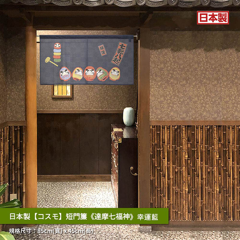 日本製【コスモ】短門簾《達摩七福神》幸運藍