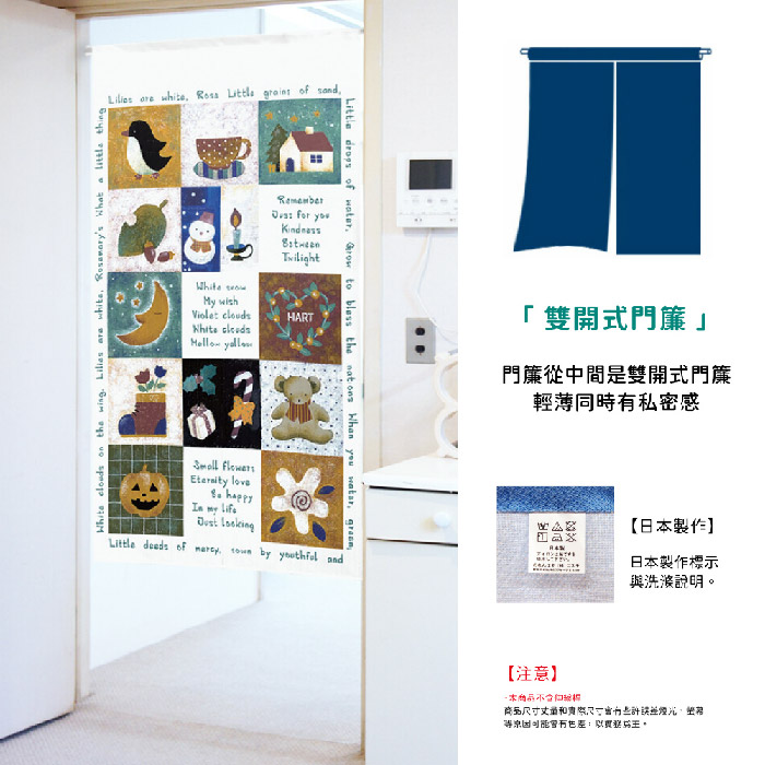 日本製【コスモ】長門簾《秋冬回憶》 縦にストライプ状のレース編模様がある、編みレース生地を使用。 レース生地の中でもしっかりとした生地ですので 反対側がシルエット調に見えるくらいの透け感があります。 おしゃれな洋風テイストは暖簾としてはもちろん タペストリーのようなご使用もおすすめです。 洋風柄/洋柄/オシャレ/お洒落/インテリア/転写 間仕切り/ポスター/ハロウィン/雪だるま/シンプル 採採用針織蕾絲布料製成,帶有垂直條紋蕾絲針織圖案。 這款面料是目前最堅固的蕾絲布料之一。 它是如此透明,以至於另一面看起來就像剪影一樣。 時尚的西式風格,推薦用作窗簾和掛毯。 我們還建議將其用作掛毯。 生產國:日本材質/成分:100%聚酯纖維包裝:獨立袋包裝尺寸:約85 公分(寬)x 150 公分(長)國際條碼:4943741947776出貨:門簾*1件清洗方式:可水洗、不可漂白、不可烘乾顏色:如圖,網頁產品因拍攝與各顯示器顯色不同關係,與實品略有差異, 此商品圖為參考用之情境圖示,產品內容以規格敘述內容為準適用:臥室門、廚房門、浴室門、衣櫥、玄關入口...等 【注意事項】伸縮桿需自備,商品內容為門簾本體並無附桿子