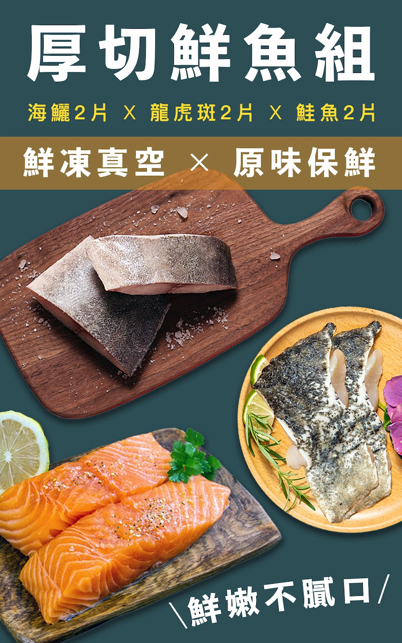 ◎品牌:一夫水產 ◎規格: 海鱺魚x2/ 龍虎斑x2/ 鮭魚x2 ◎逛逛專館: 一夫水產生技有限公司
