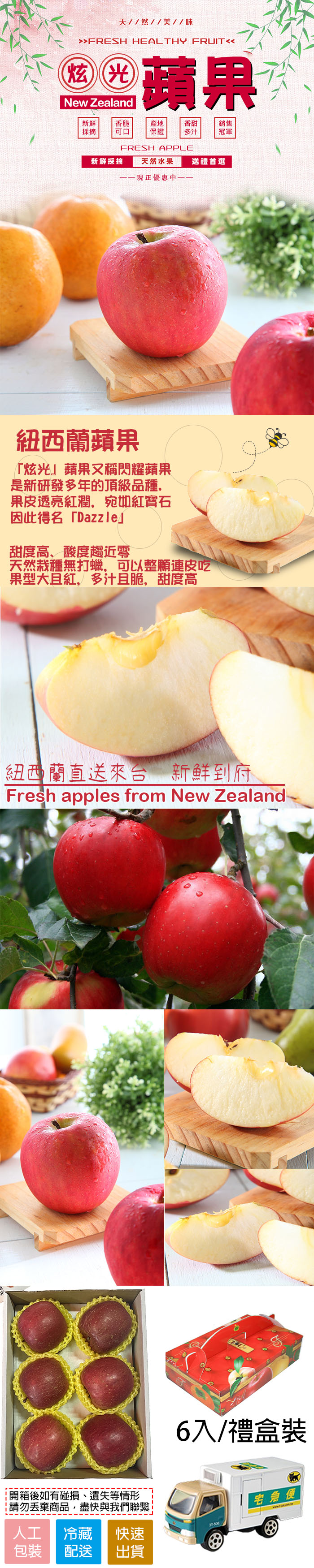 【一等鮮】紐西蘭Dazzle炫光蘋果8入裝禮盒3盒(280gx8入/盒)(免運費)