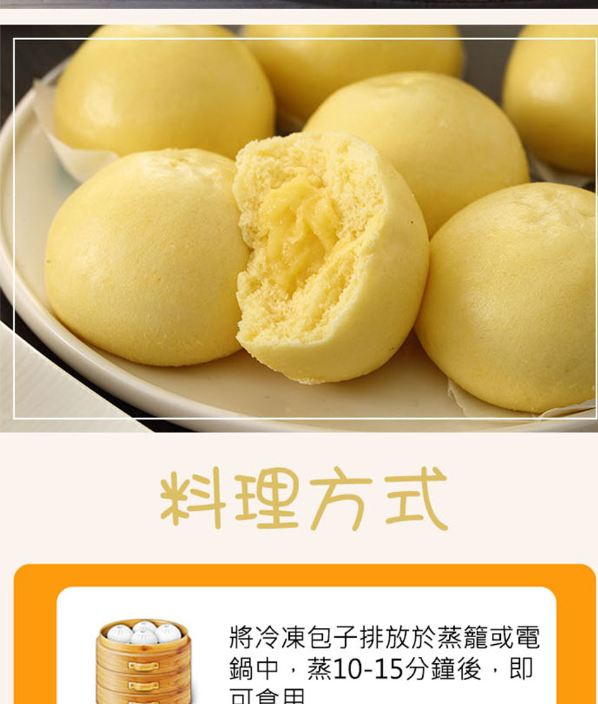 2、電鍋加熱:將冷凍包子排放於蒸籠或電鍋中,蒸10-15分鐘後,即可食用