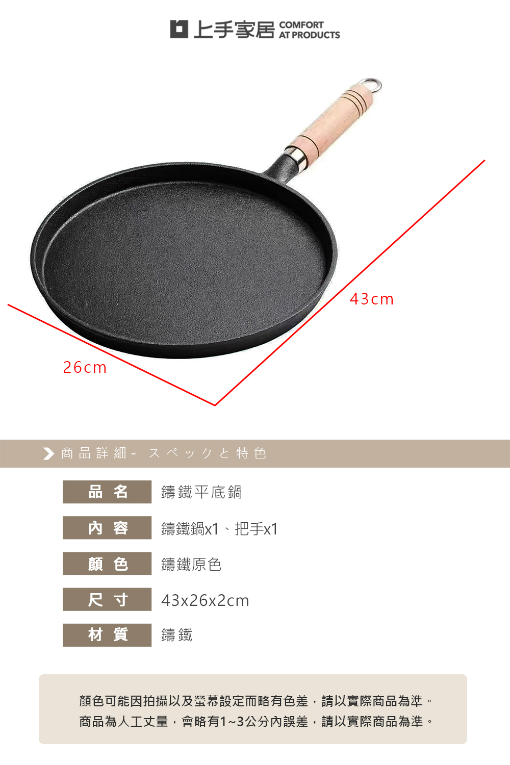 【上手家居】鑄鐵平底鍋 黑色(平底鍋/鑄鐵鍋/煎餅鍋/煎鍋/牛排鍋/烙餅鍋)