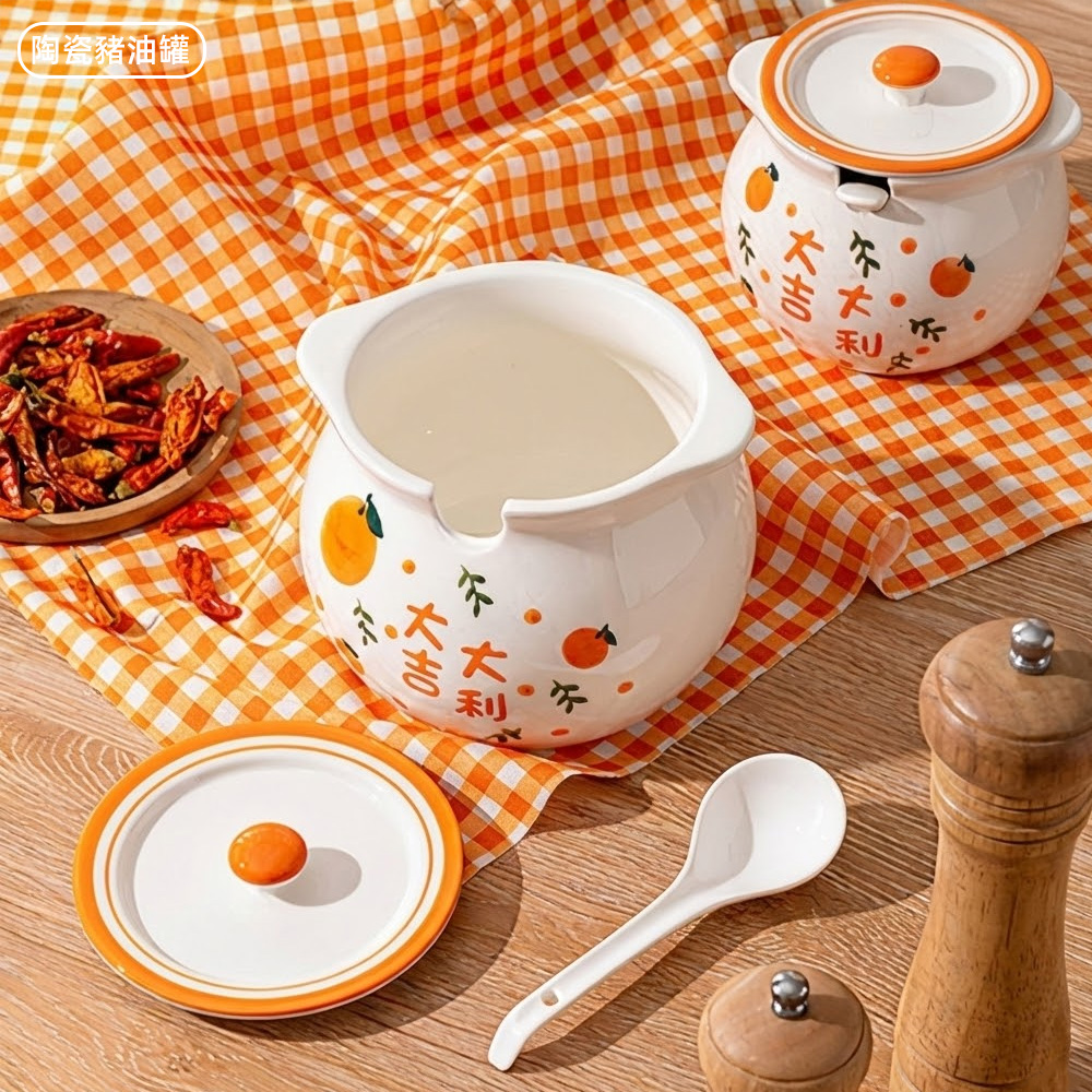 【上手家居】陶瓷豬油罐1400ml-大吉大利(廚房好物/儲油罐/陶瓷罐/料理用具)