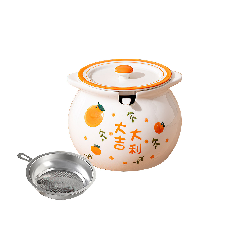 這款陶瓷豬油罐可直接承接熱油,搭配金屬濾網先行過濾雜質,靜置放涼後自然凝固。圓潤罐身容量充足,勺取順手不沾亂,彩繪外觀讓豬油罐不再只是工具,而是留在檯面也好看的廚房日常。