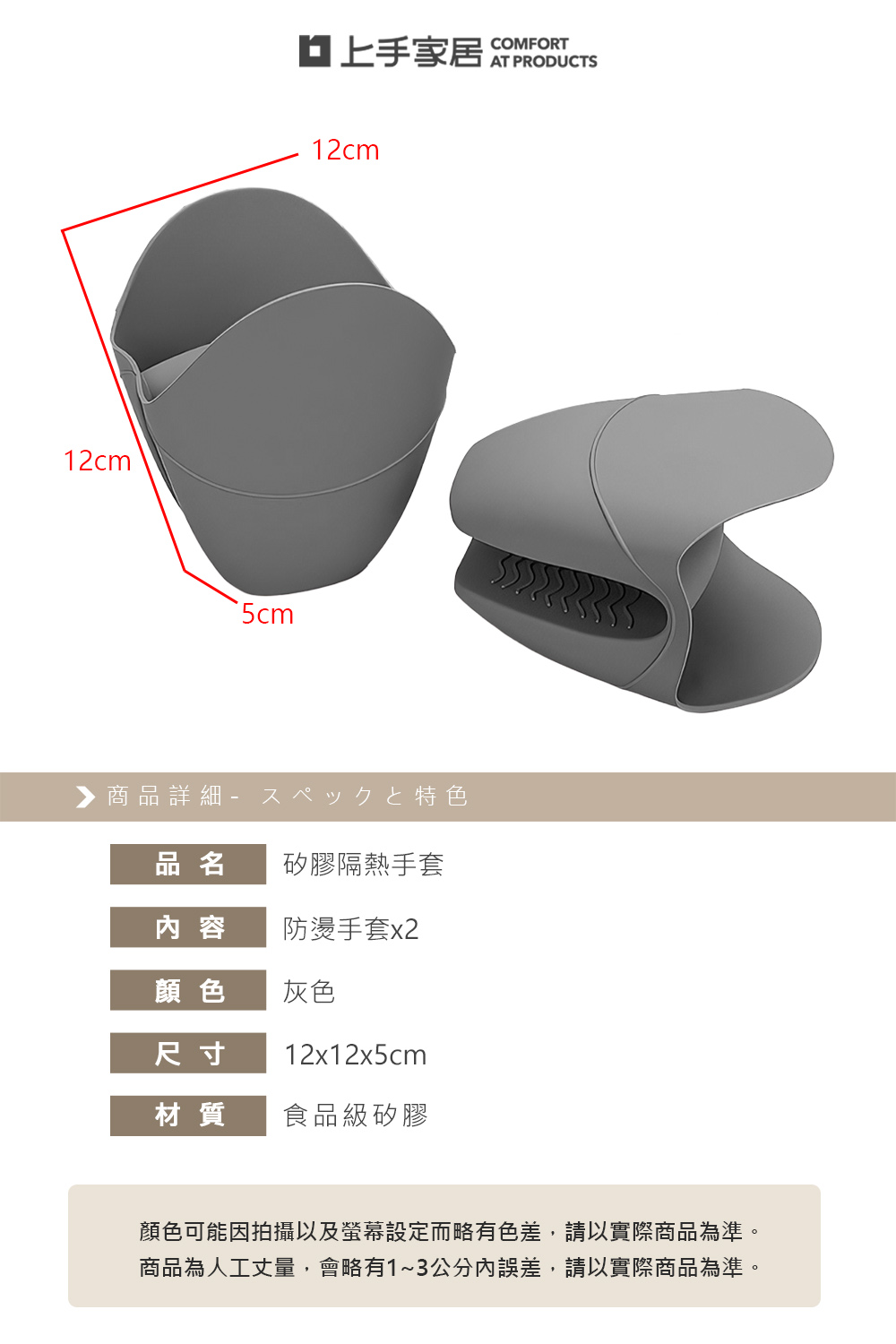 ⚠ 使用提醒:適合短時間拿取高溫鍋具與餐盤; 顏色與尺寸可能因拍攝與手工測量略有誤差,請以實際商品為準。